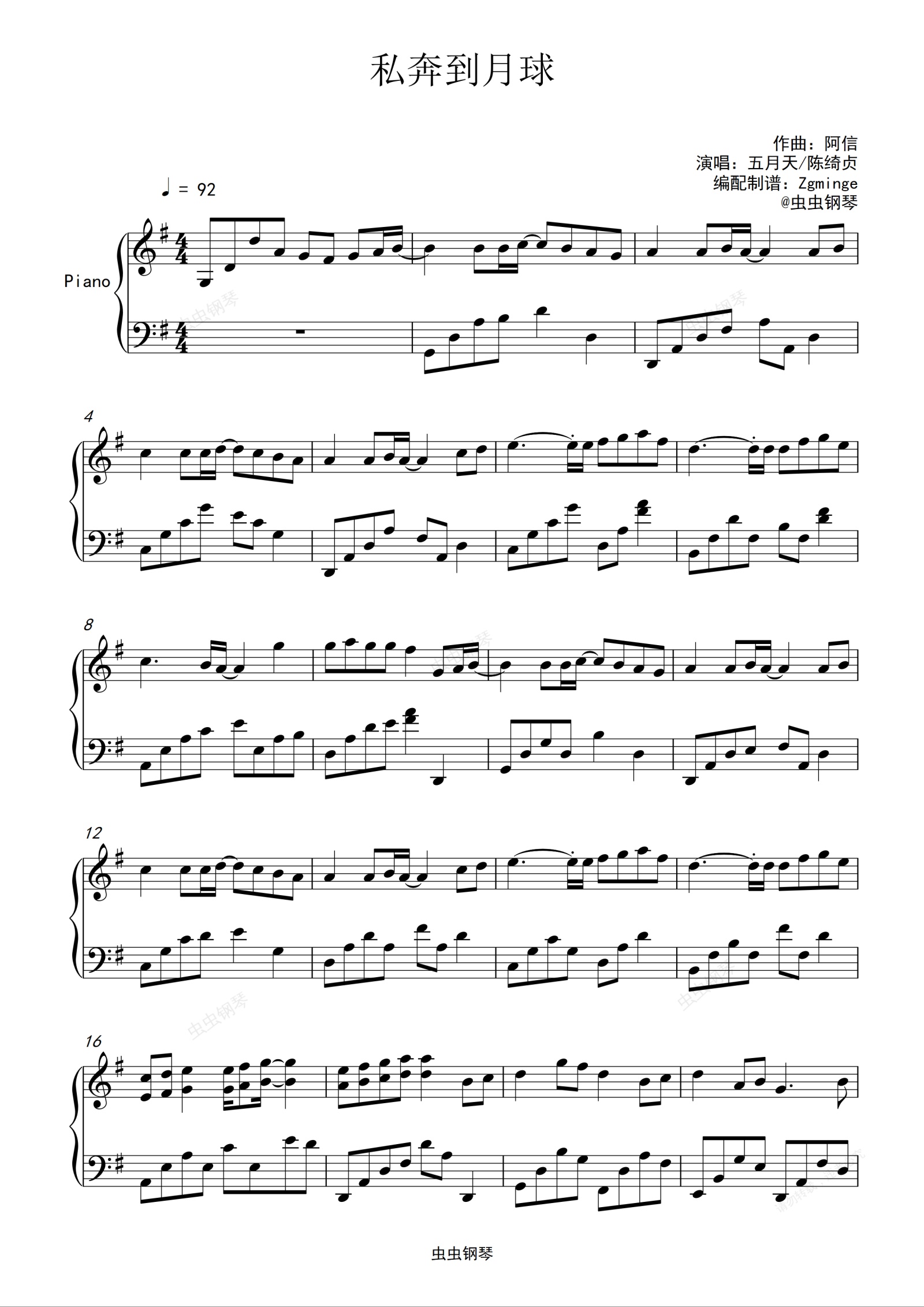 钢琴谱:私奔到月球
