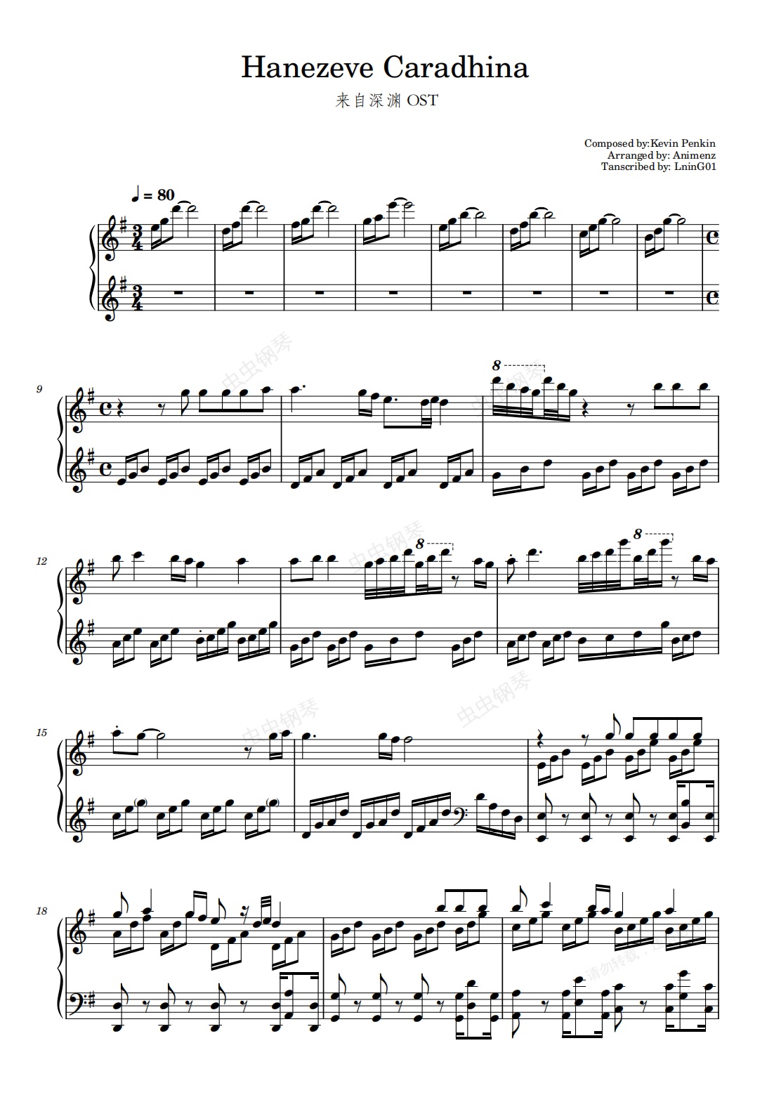 钢琴谱:【Animenz】Hanezeve Caradhina-日出神曲