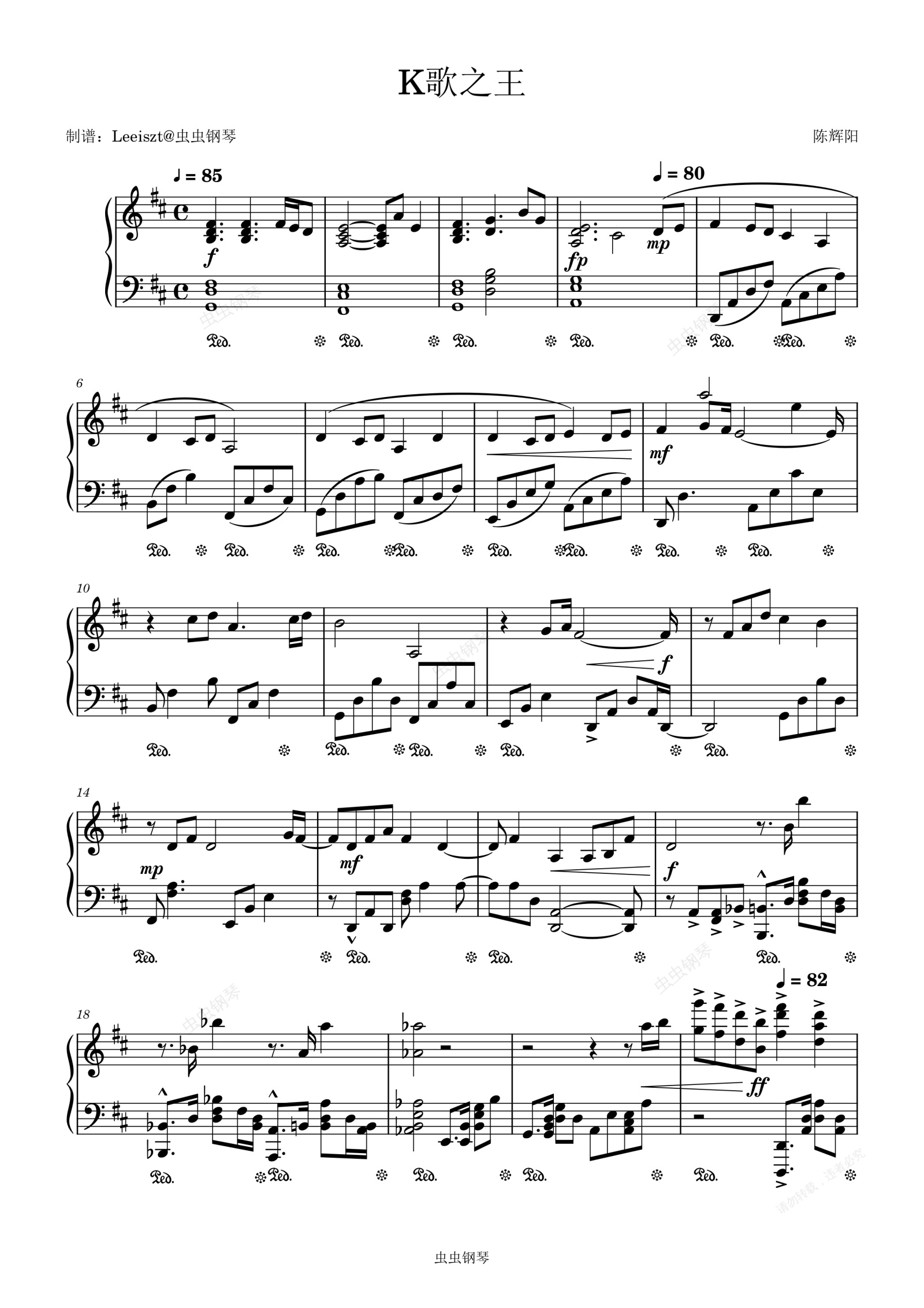 钢琴谱:K歌之王(D调原版钢琴伴奏)