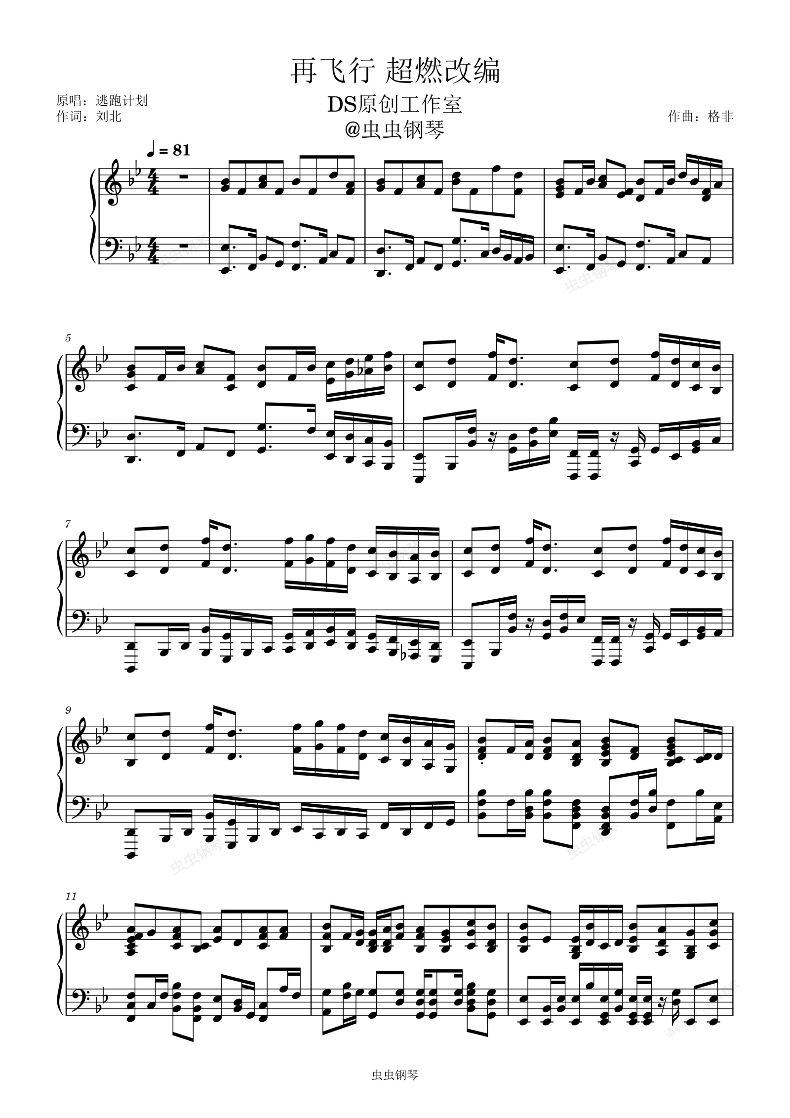 钢琴谱:再飞行 超燃改编