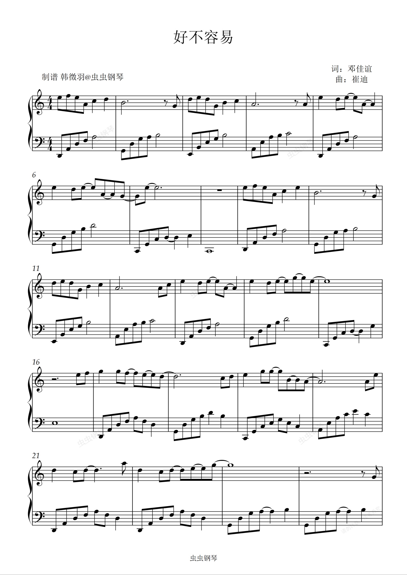 钢琴谱:好不容易 张靓颖 C调简单易弹