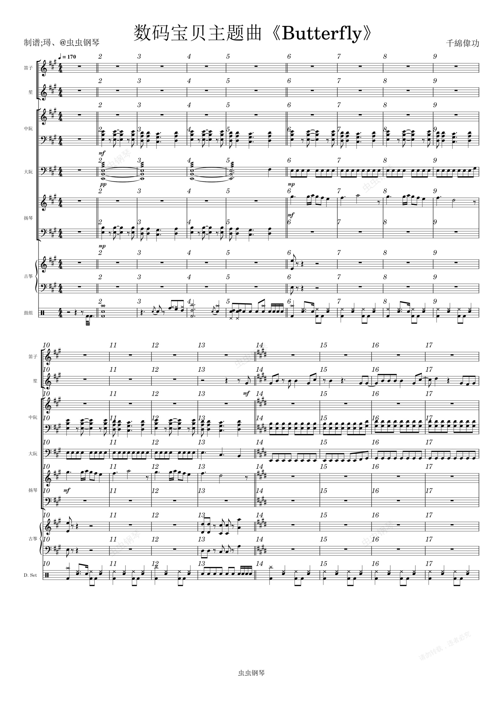 钢琴谱:数码宝贝主题曲《Butter-Fly》