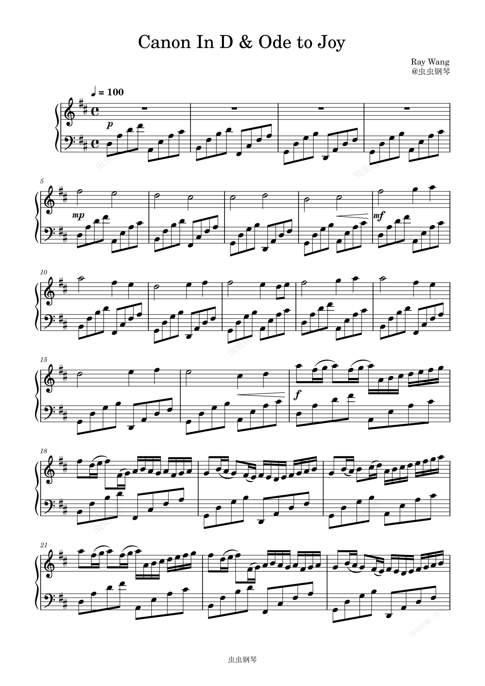 钢琴谱:Canon In D & Ode to Joy (卡农 & 欢乐颂改编)