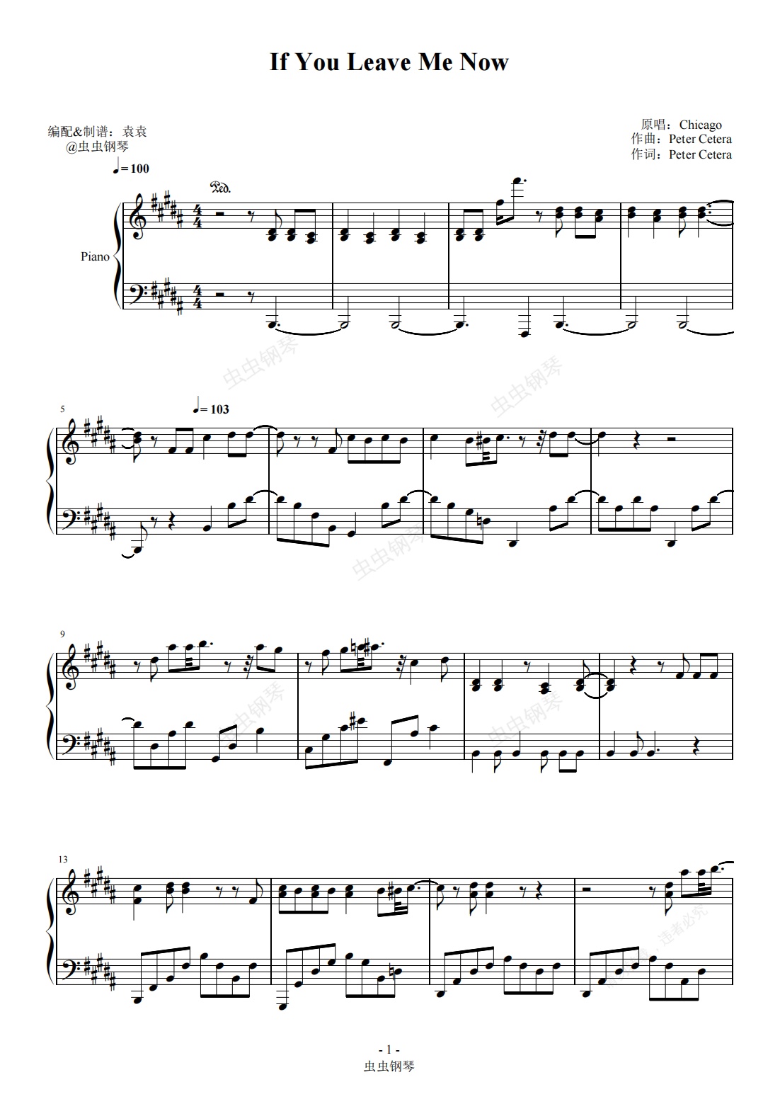 钢琴谱:GTA5 插曲 If You Leave Me Now 简易演奏版