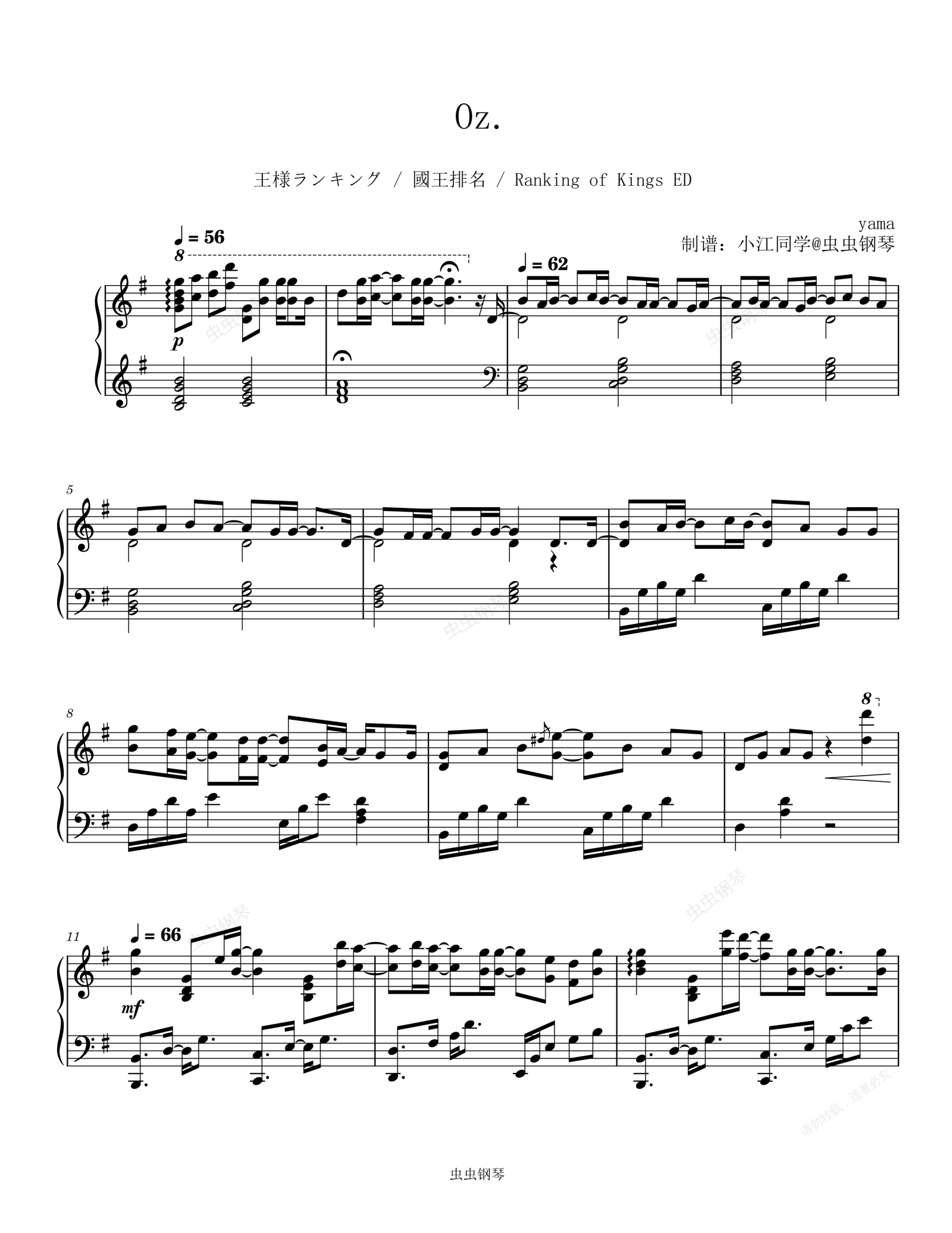 钢琴谱:Oz. 國王排名 / Ranking of Kings ED