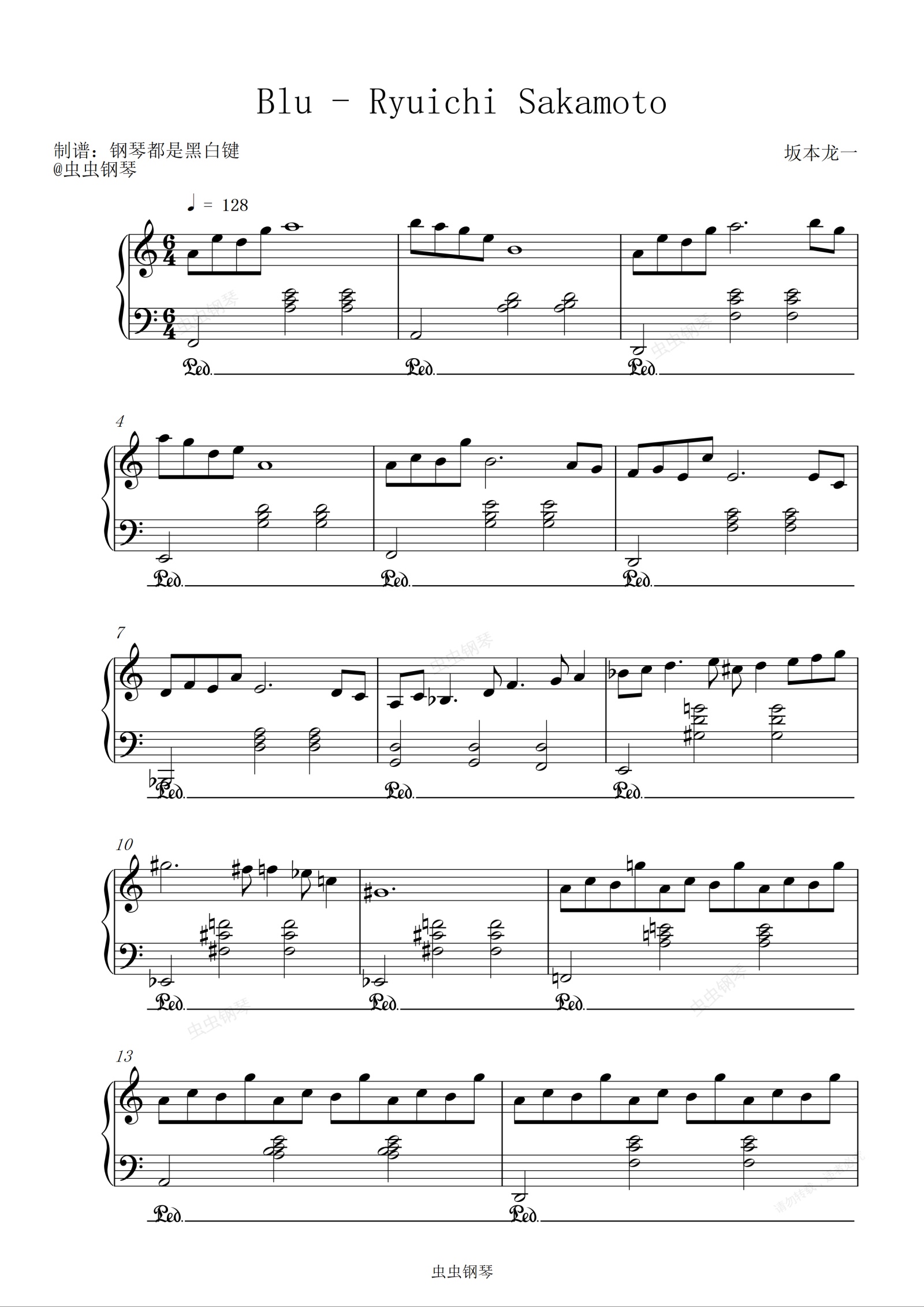 钢琴谱:坂本龙一 -Blu【钢琴轻音乐 | 舒缓音乐】