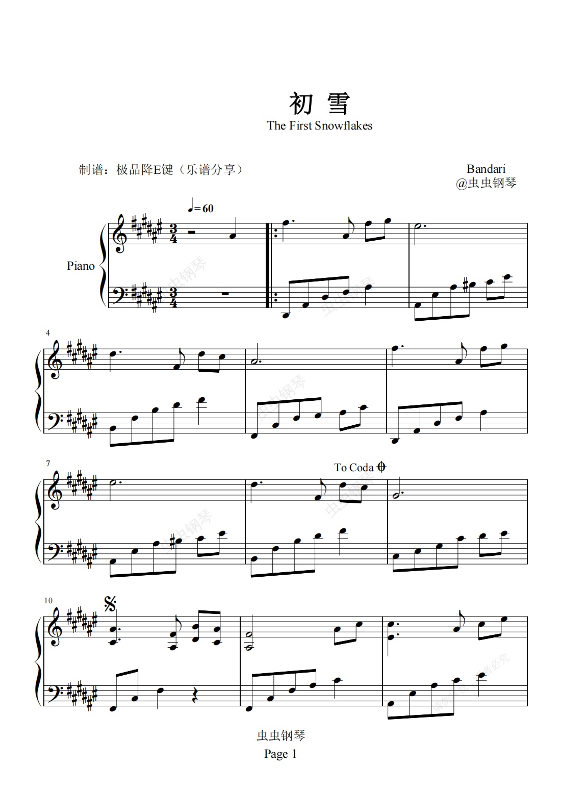 钢琴谱:初雪The First Snowflakes2022倾心优化