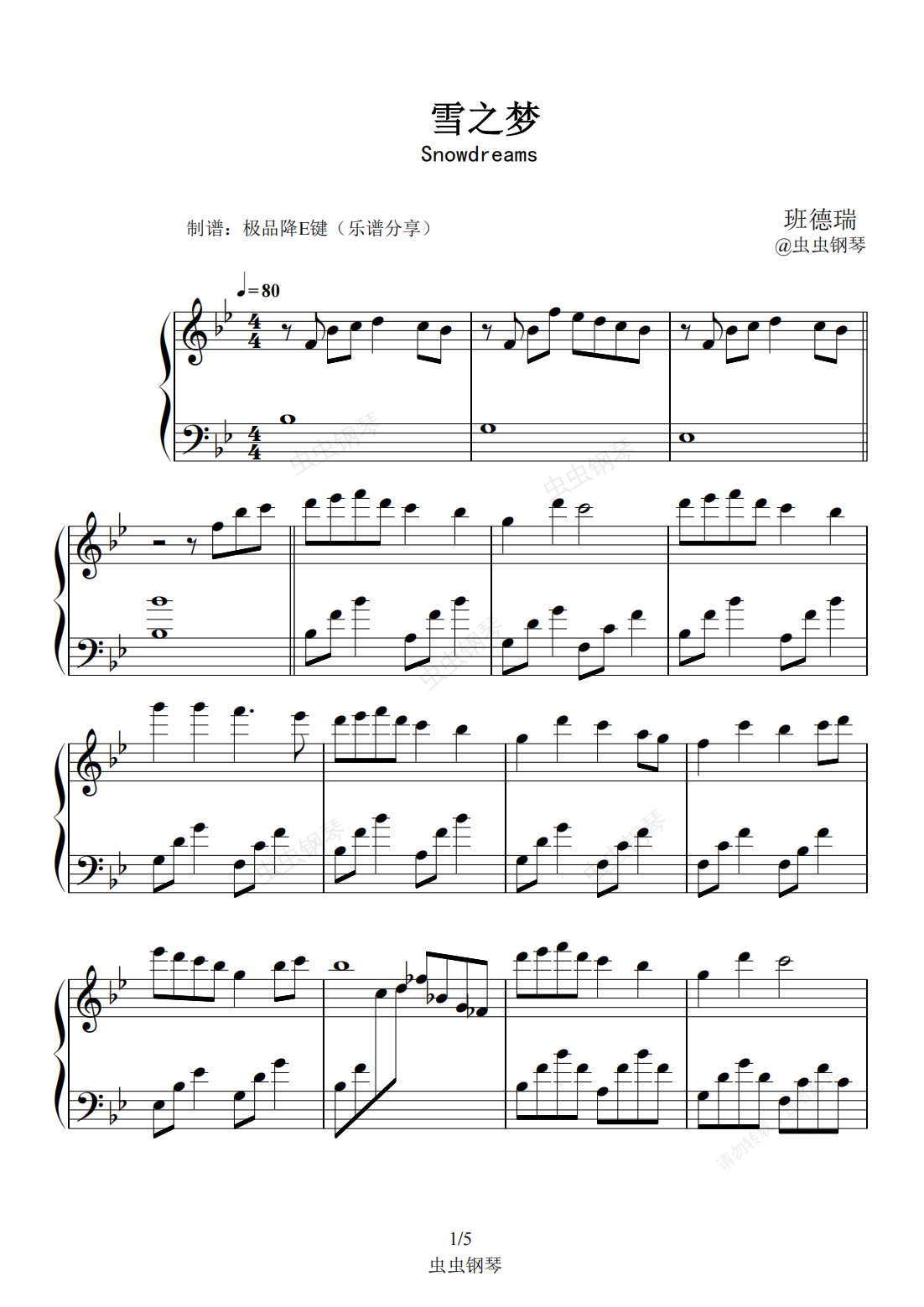 钢琴谱:雪之梦Snowdreams 2022倾心优化