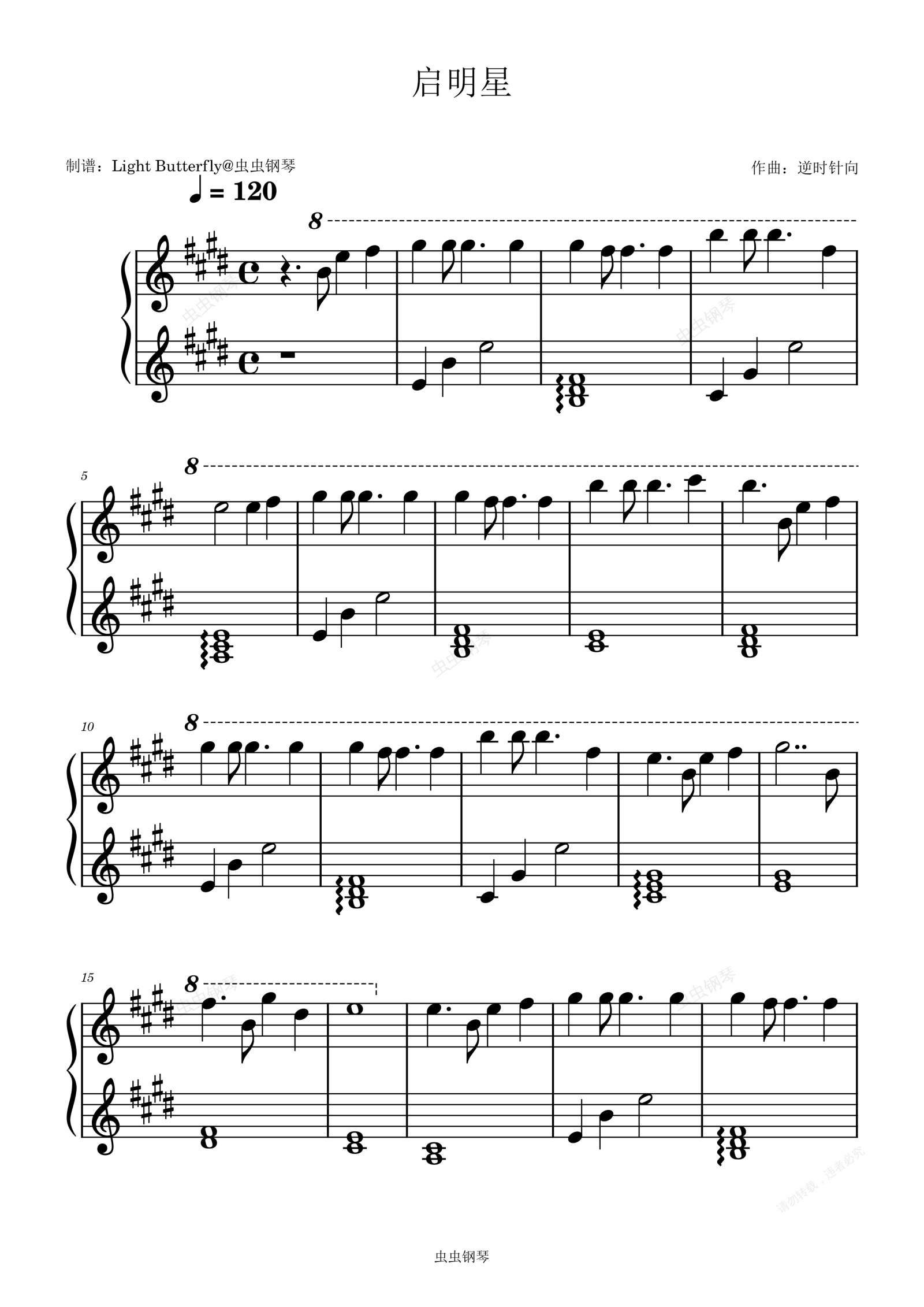钢琴谱:启明星-逆时针向