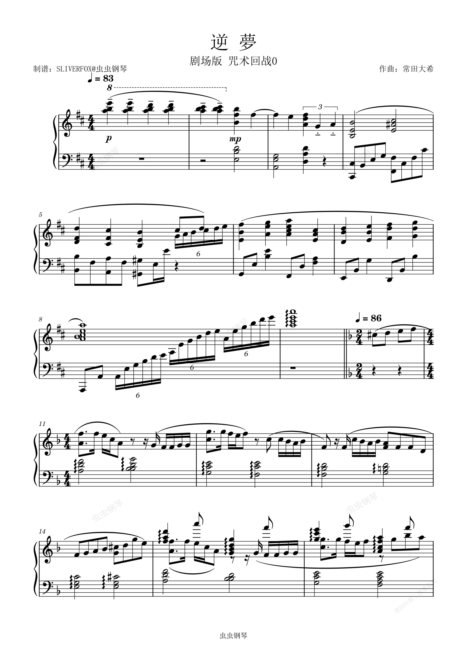 钢琴谱:《逆夢》咒术回战0剧场版片尾曲 独奏