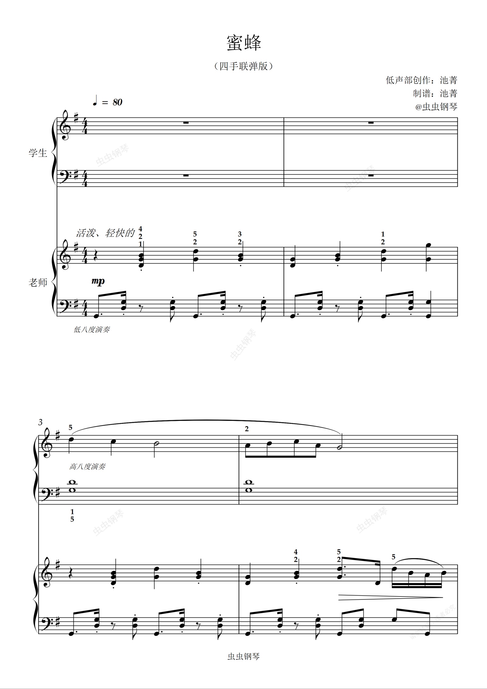 钢琴谱:《蜜蜂》小汤3教师伴奏-四手联弹,双行乐谱