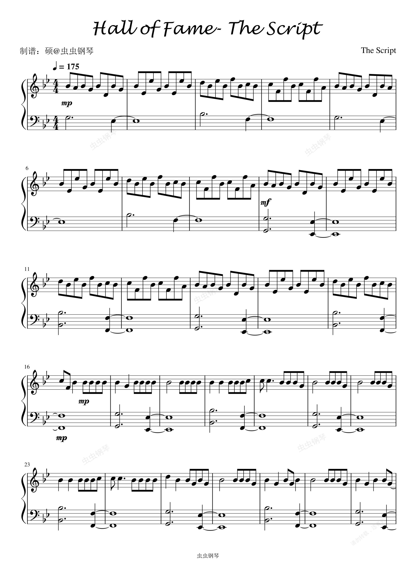 钢琴谱:Hall of Fame - The Script (手稿乐队)