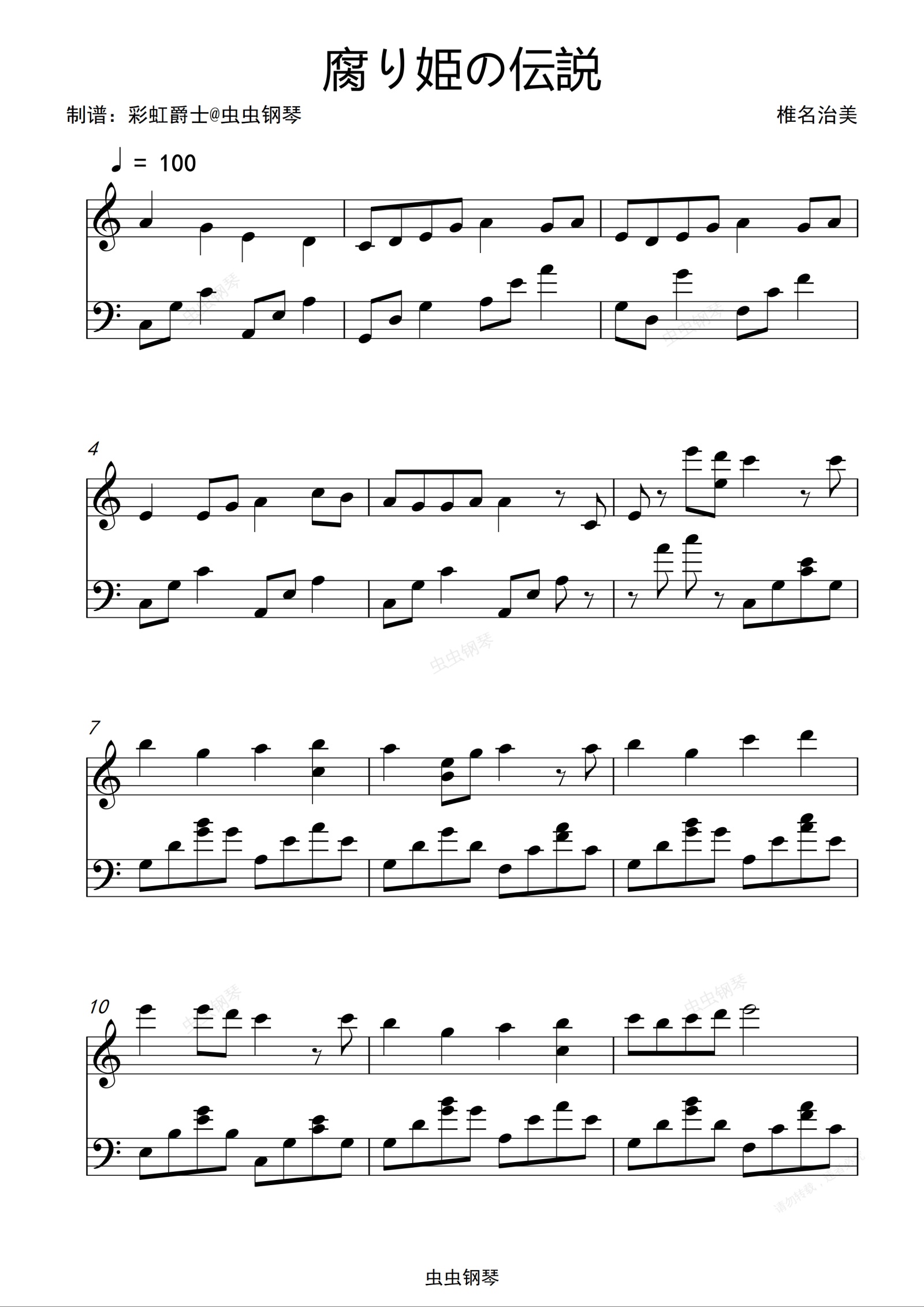 钢琴谱:腐り姫の伝説-腐姬BGM 钢琴 完整版