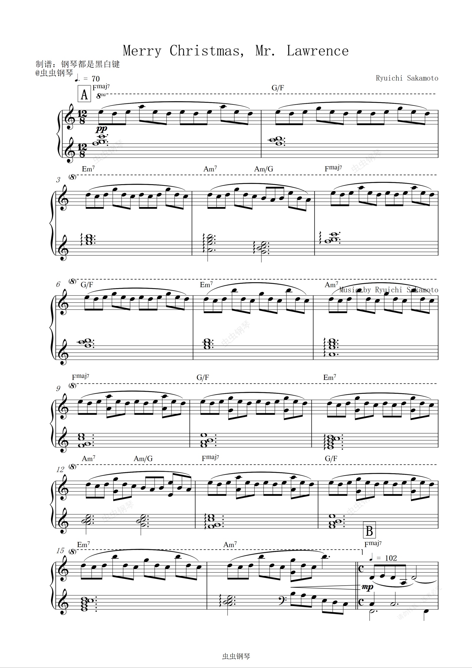Merry Christmas -坂本龙一 原版C调【钢琴轻音乐 | 舒缓音乐】