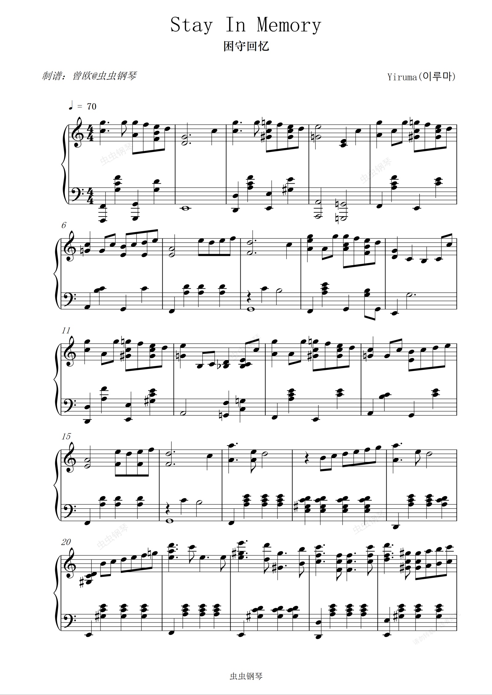 钢琴谱:Stay In Memory (困守回忆) - 李闰珉 (Yiruma)
