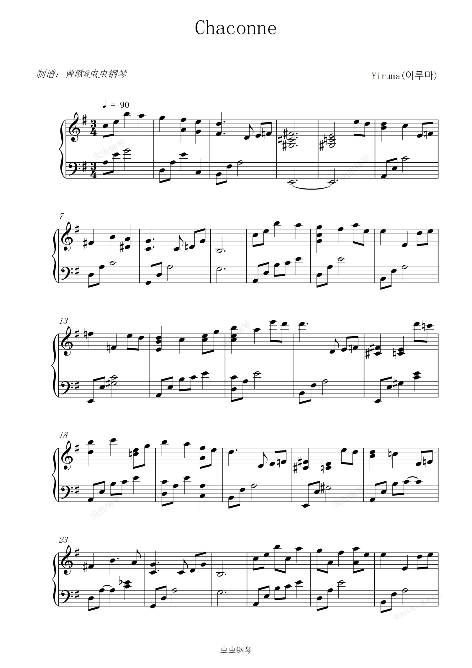 钢琴谱:Chaconne (恰空舞曲) - 李闰珉 (Yiruma)