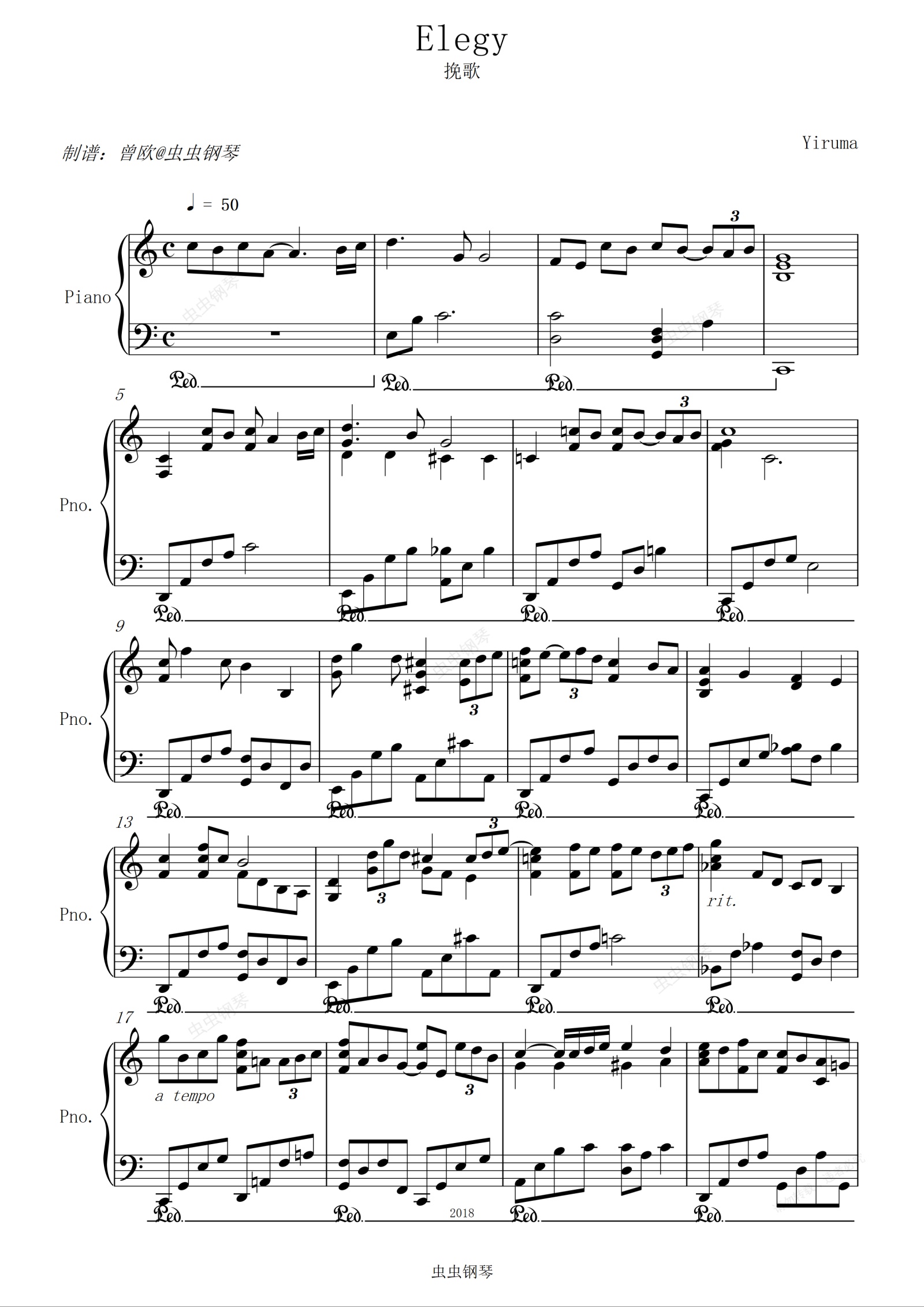 钢琴谱:Elegy (挽歌) - 李闰珉 (이루마)