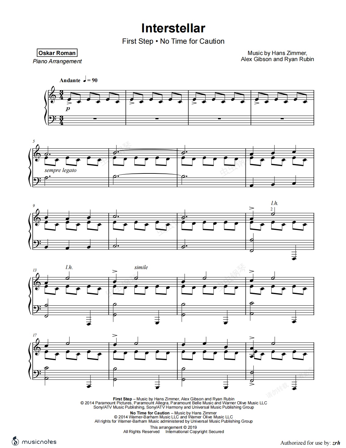 钢琴谱:Interstellar(星际穿越)