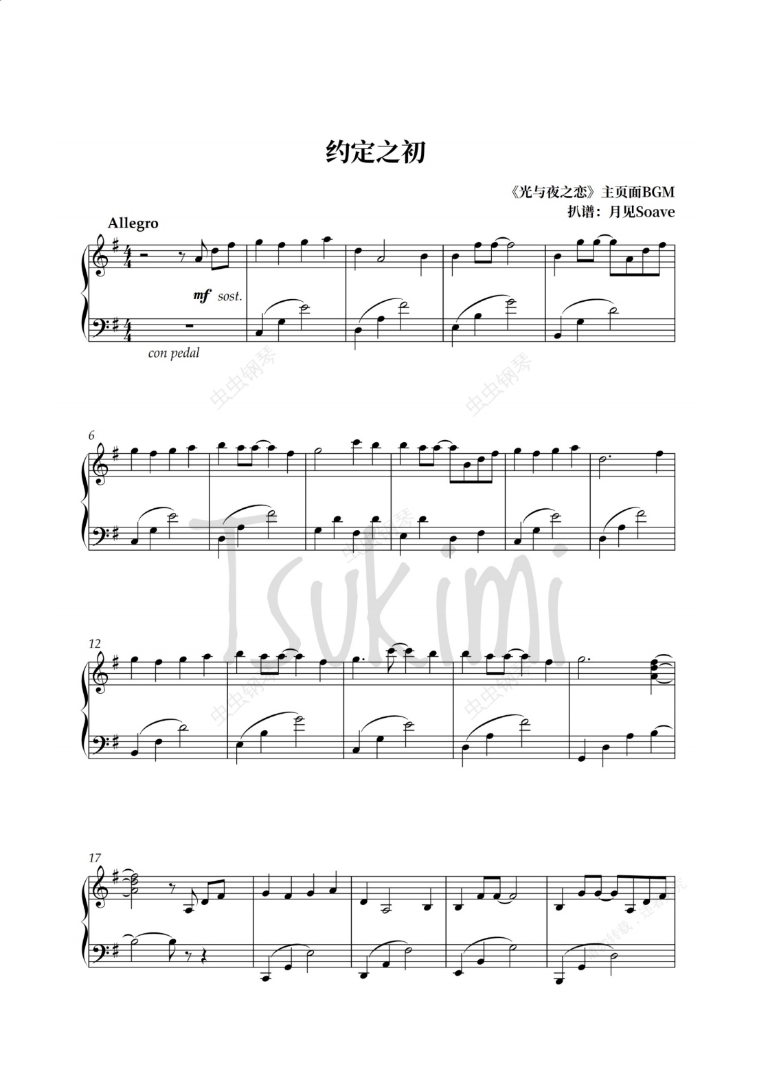 钢琴谱:光与夜之恋-约定之初(主页面日间曲)
