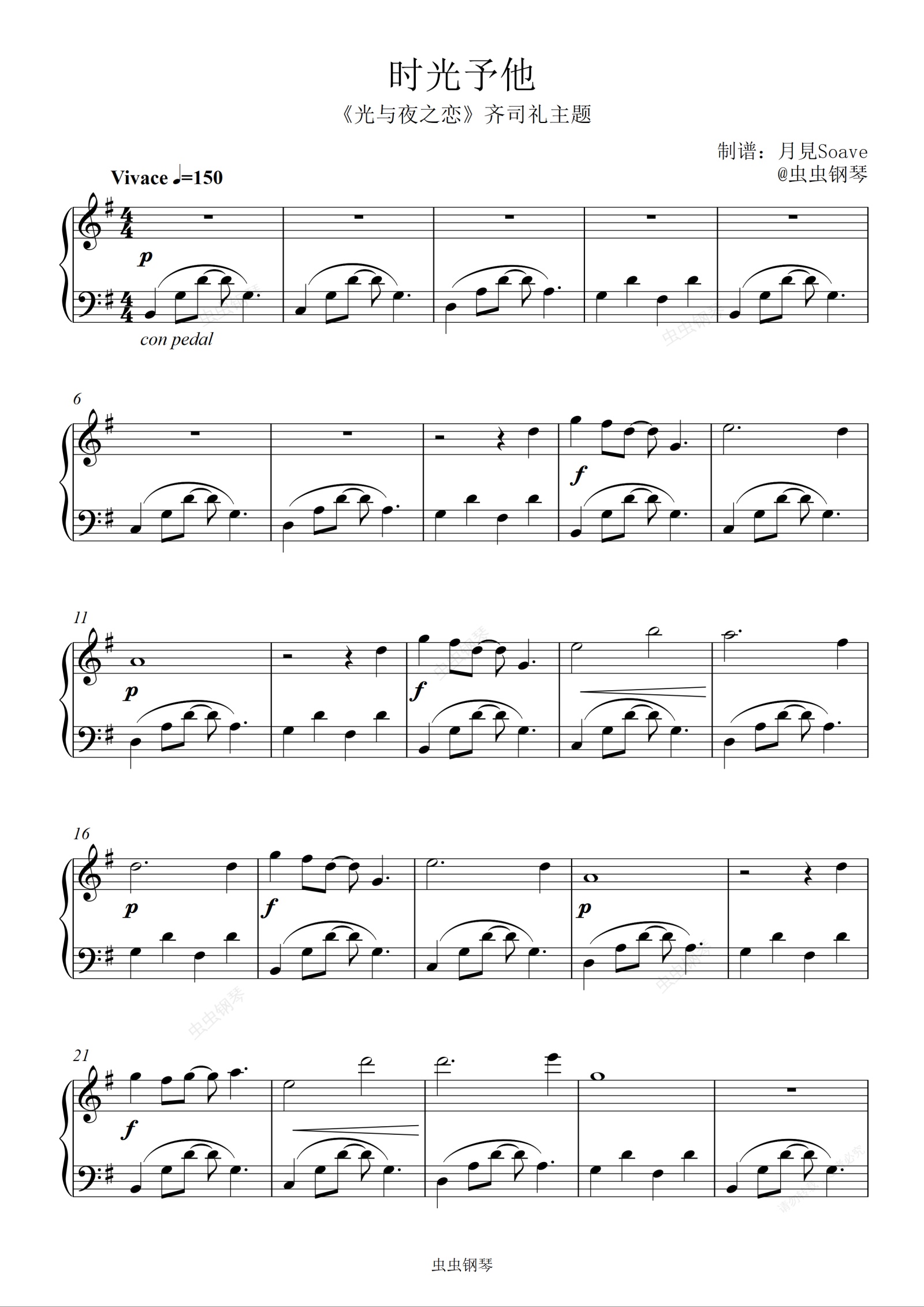 钢琴谱:光与夜之恋-时光予他-齐司礼主题