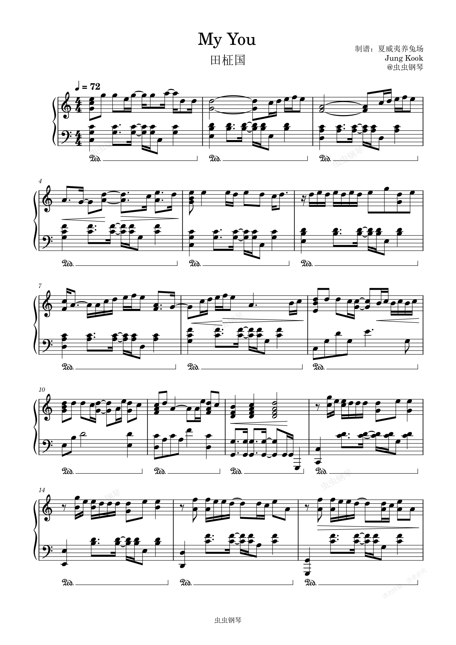 钢琴谱:【C调独奏】My You- 田柾国(BTS防弹少年团)