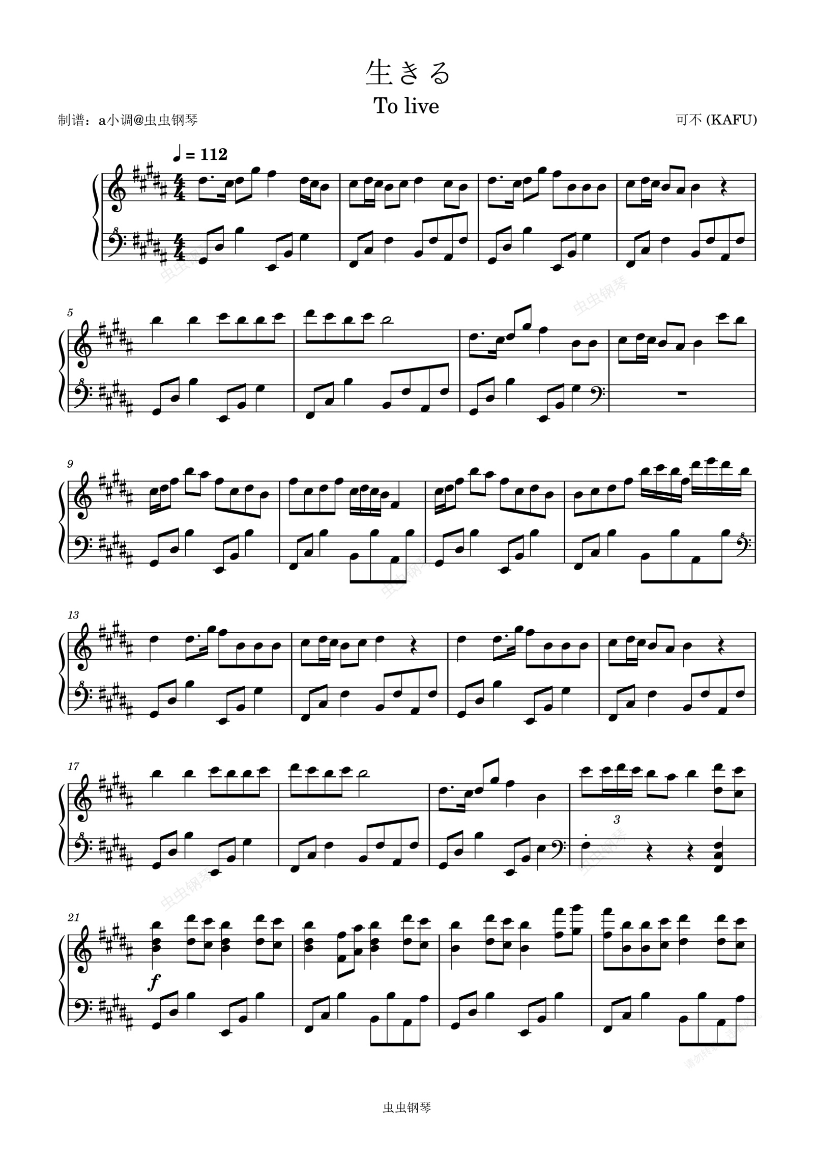 钢琴谱:生きる - 可不 (KAFU)