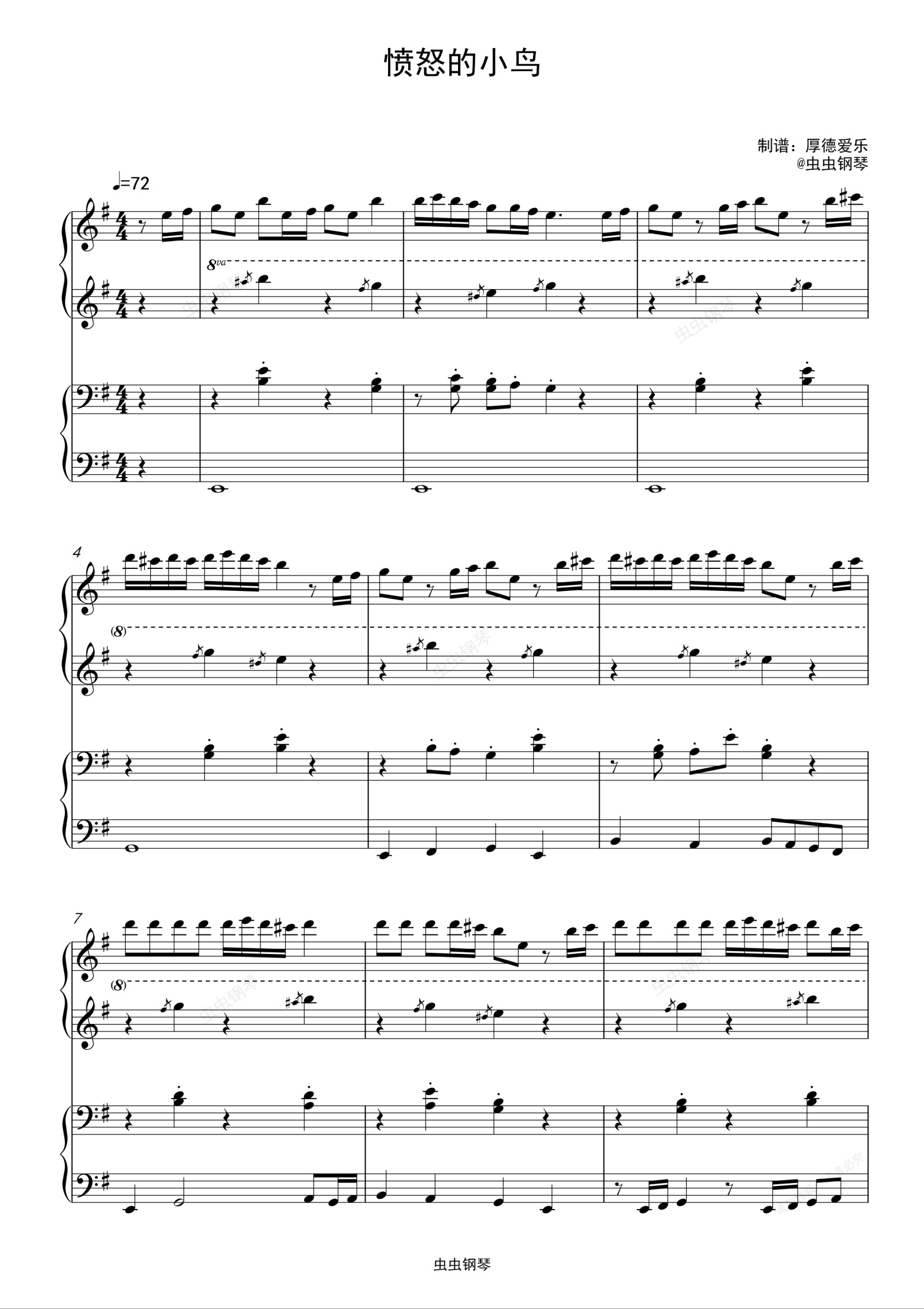 钢琴谱:《愤怒的小鸟》主题曲四手联弹版