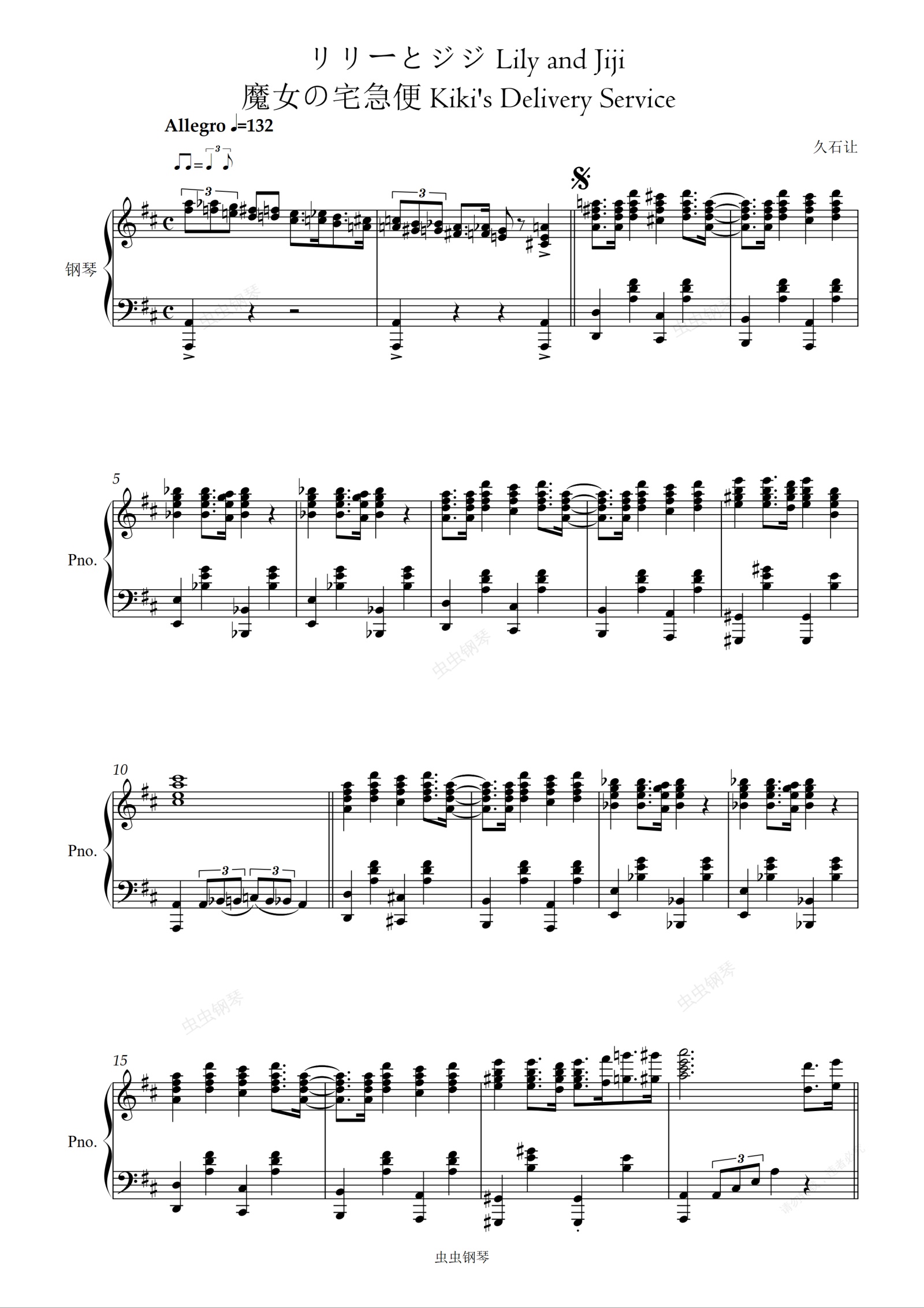 钢琴谱:【魔女宅急便】リリーとジジ Lily and Jiji