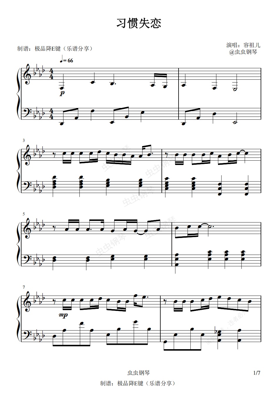 钢琴谱:习惯失恋(容祖儿)2022倾心优化