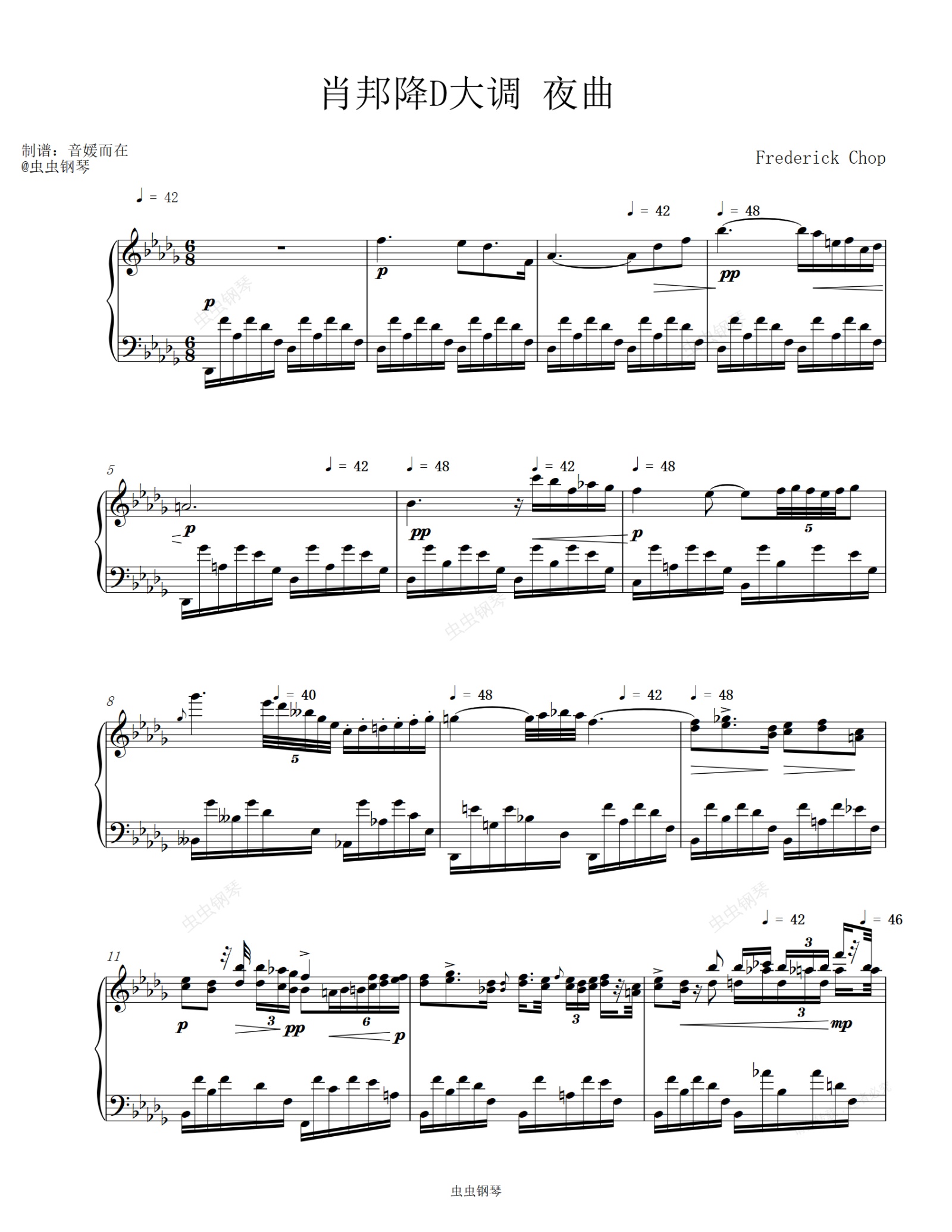 钢琴谱:肖邦降D大调 夜曲 27号2号 【优美夜曲系列】