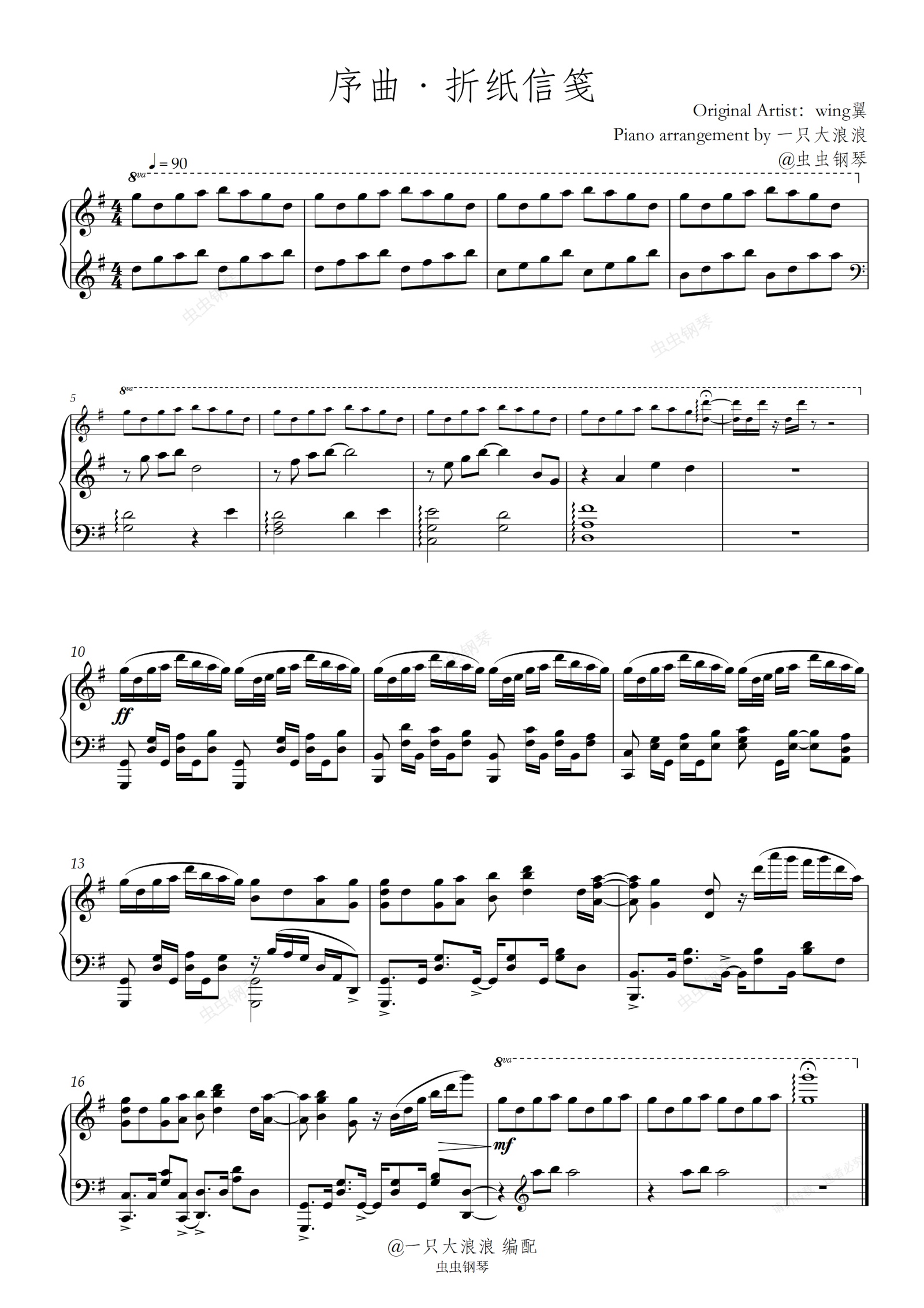 钢琴谱:序曲·折纸信笺 抒情钢琴改编