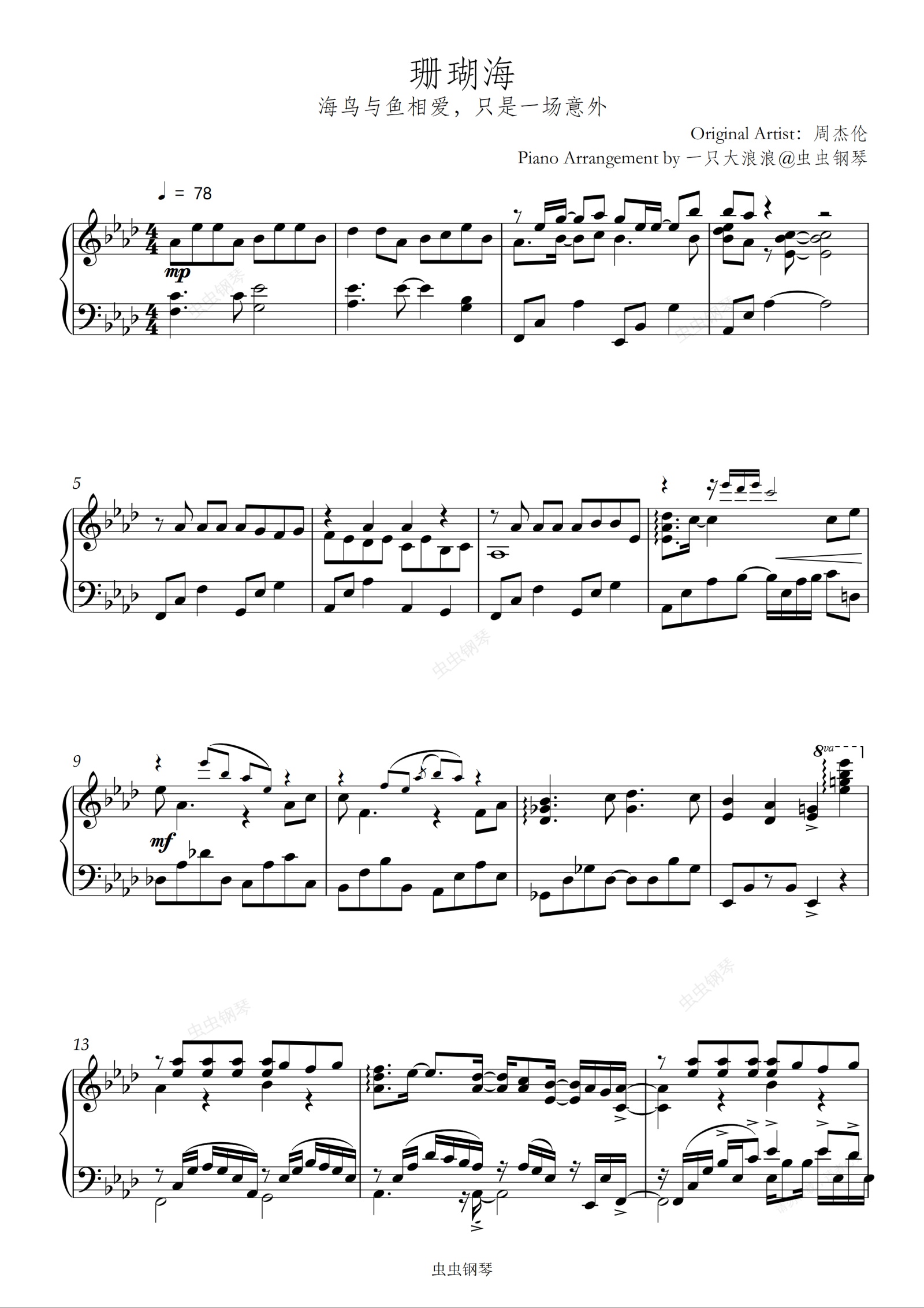 钢琴谱:珊瑚海 炫技抒情改编版本