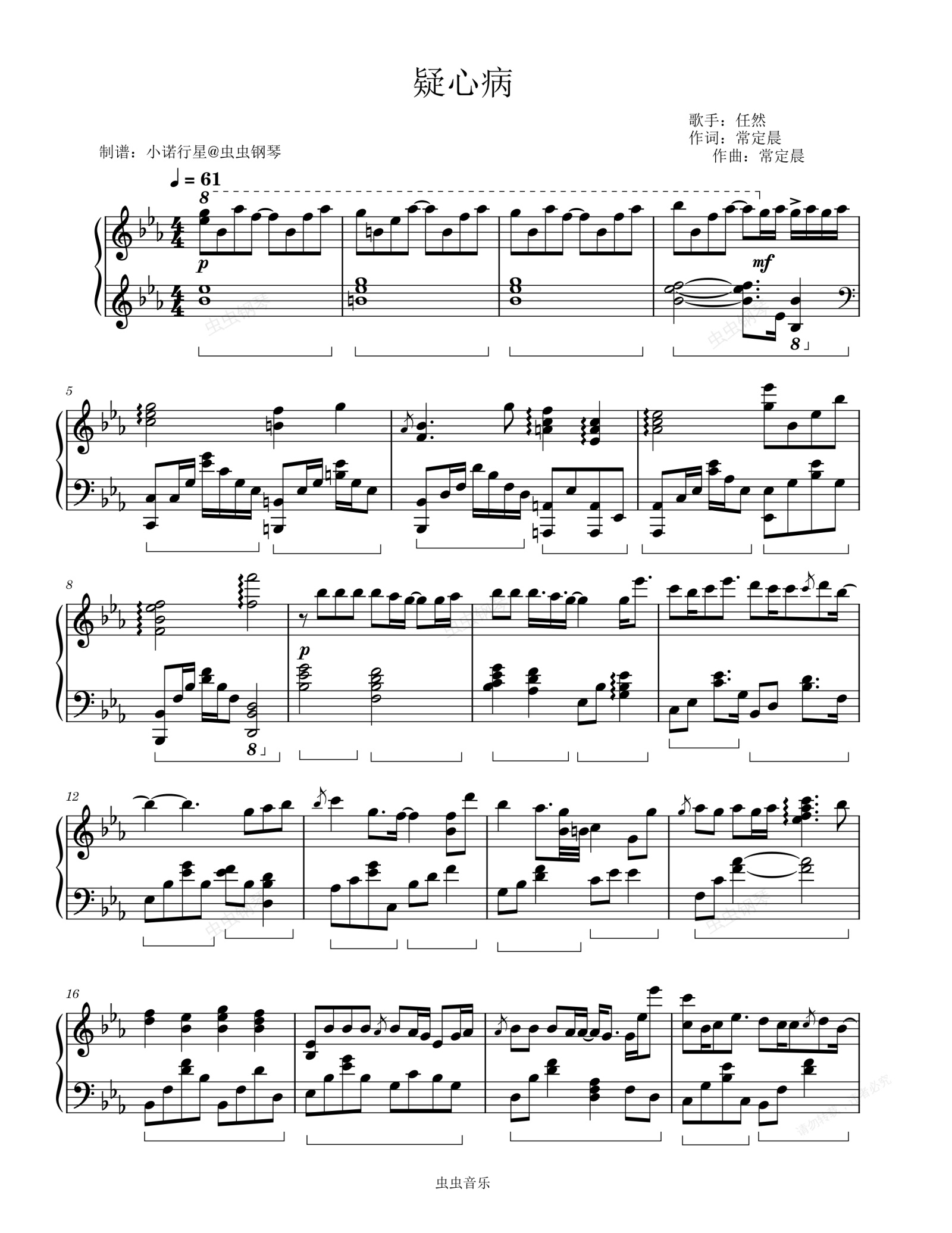 钢琴谱:疑心病-高度还原 钢琴独奏