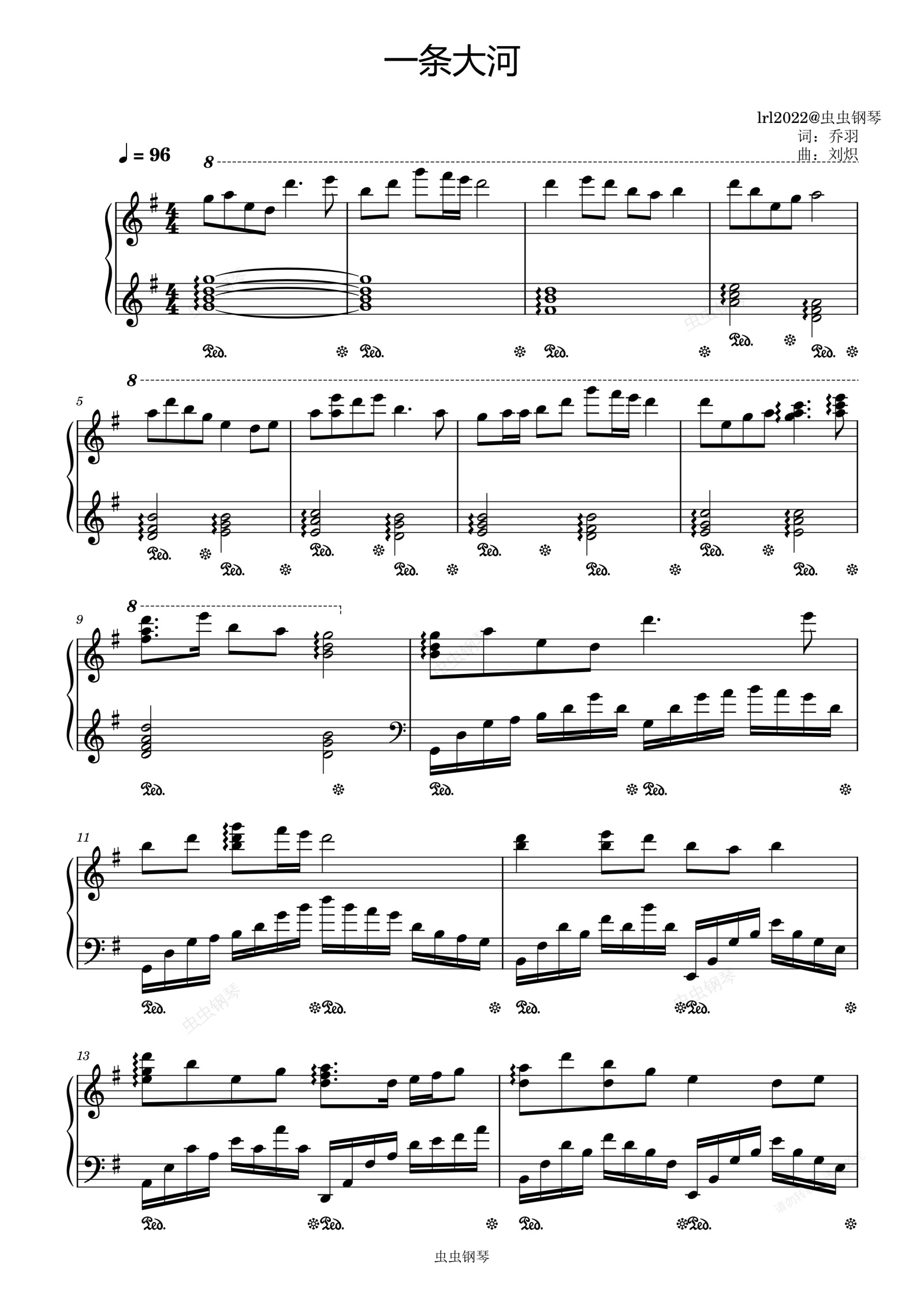 钢琴谱:一条大河-完美独奏版-我的祖国-上甘岭插曲-郭兰英-独奏版钢琴谱