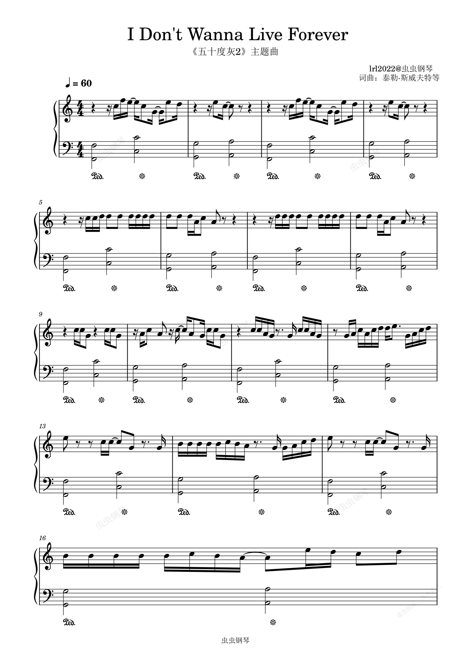 钢琴谱:I Dont Wanna Live Forever-五十度灰2主题曲-独奏版钢琴谱