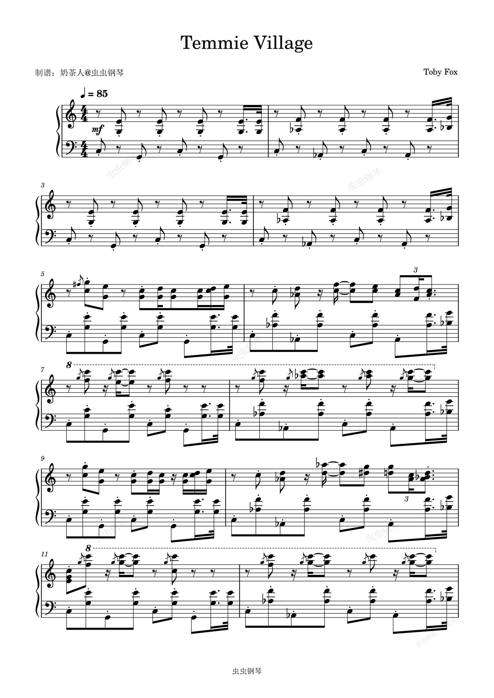 钢琴谱:《Temmie Village》Undertale传说之下 提米村