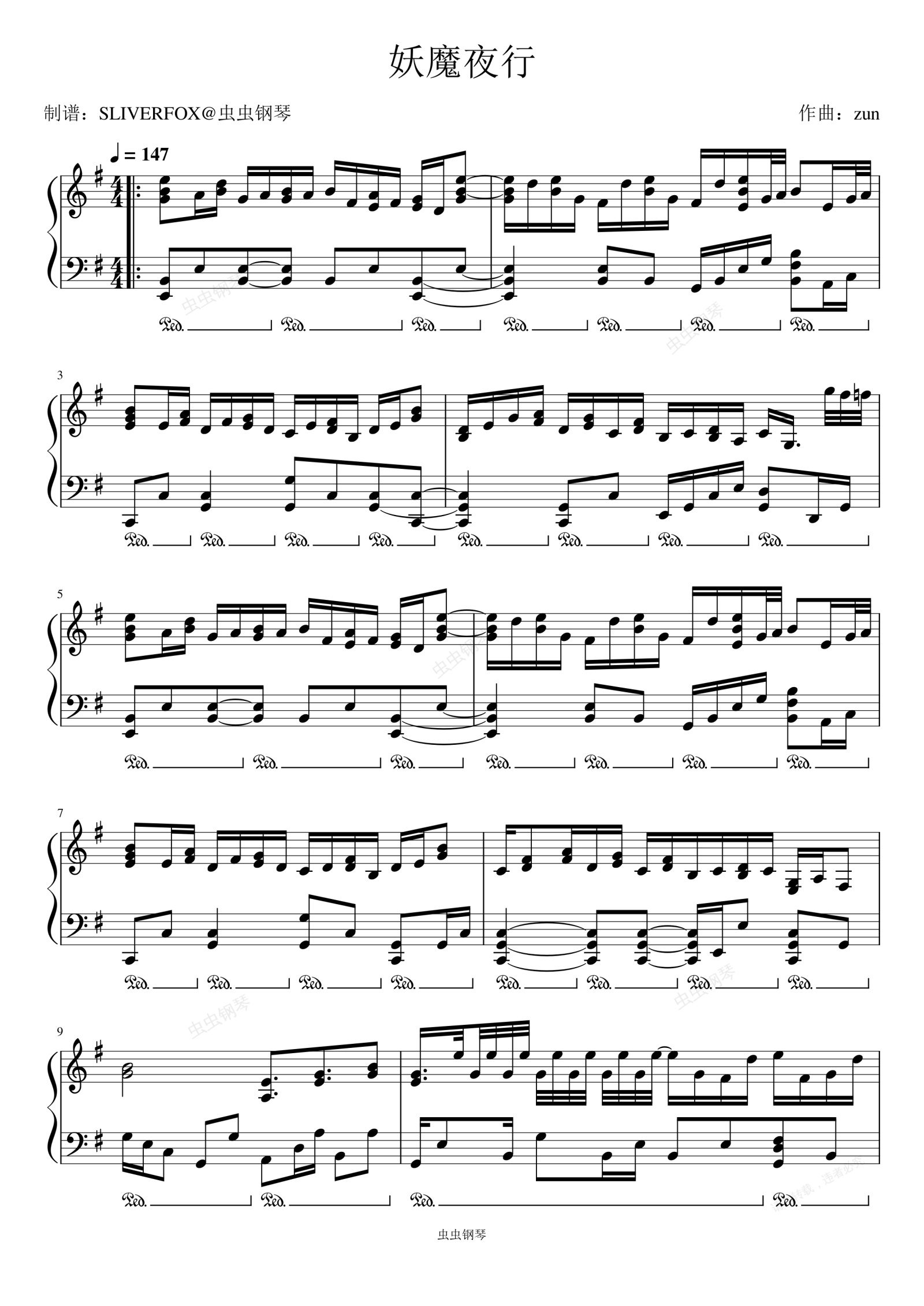 钢琴谱:《妖魔夜行》东方Project 露米娅BGM
