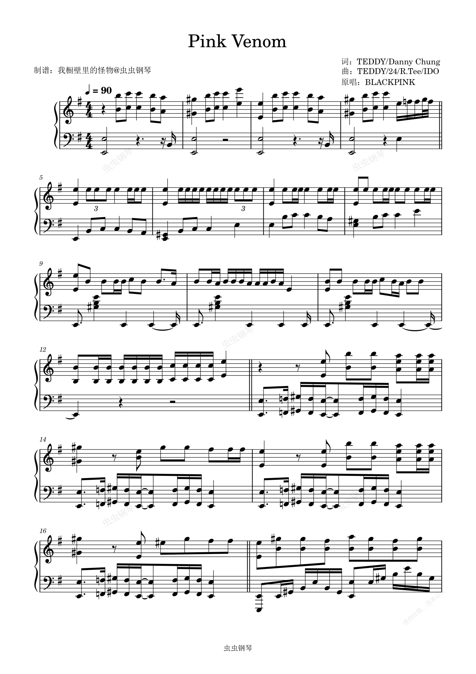 钢琴谱:BLACKPINK先行曲《Pink Venom》独奏谱