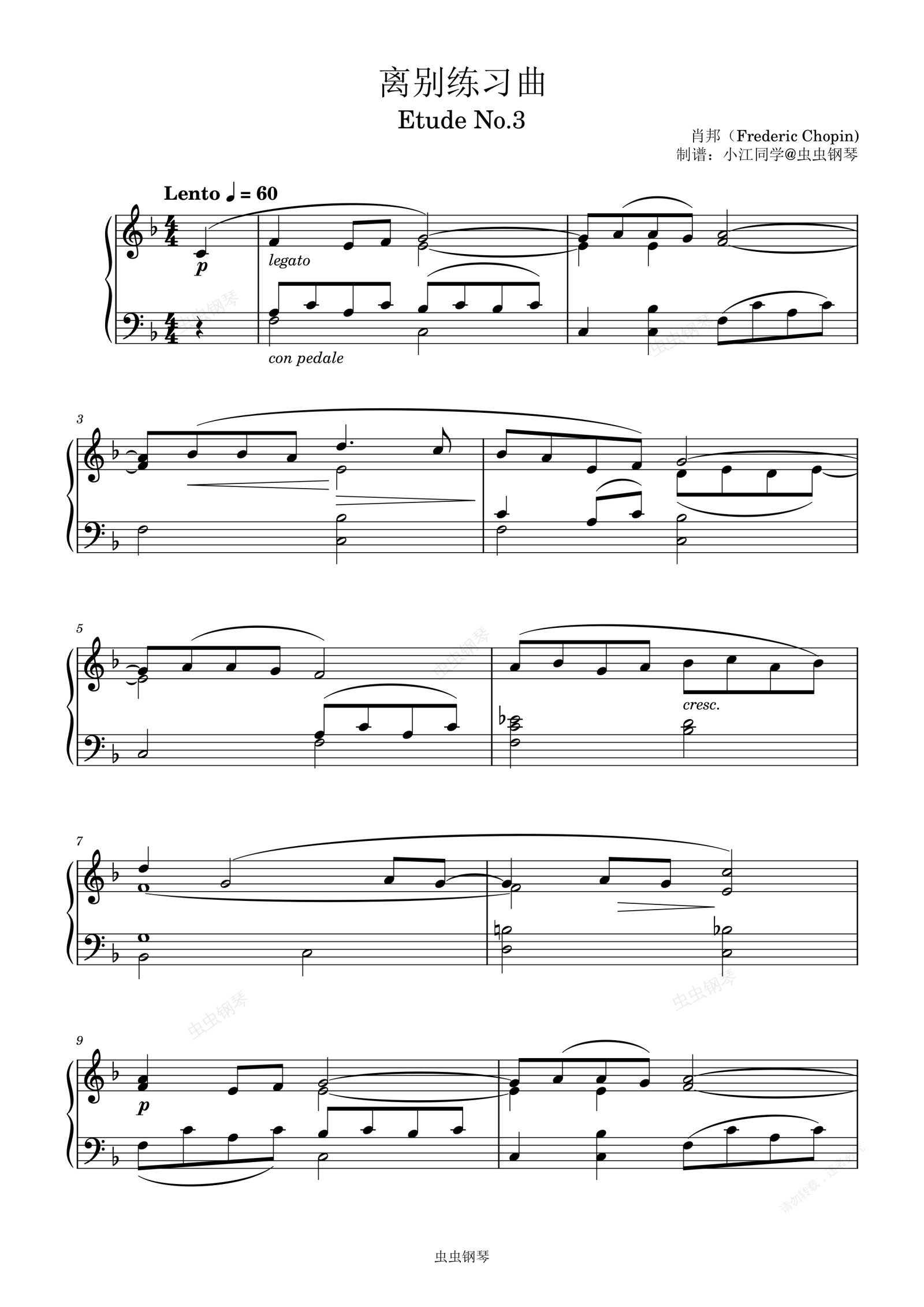 钢琴谱:离别练习曲 简化版