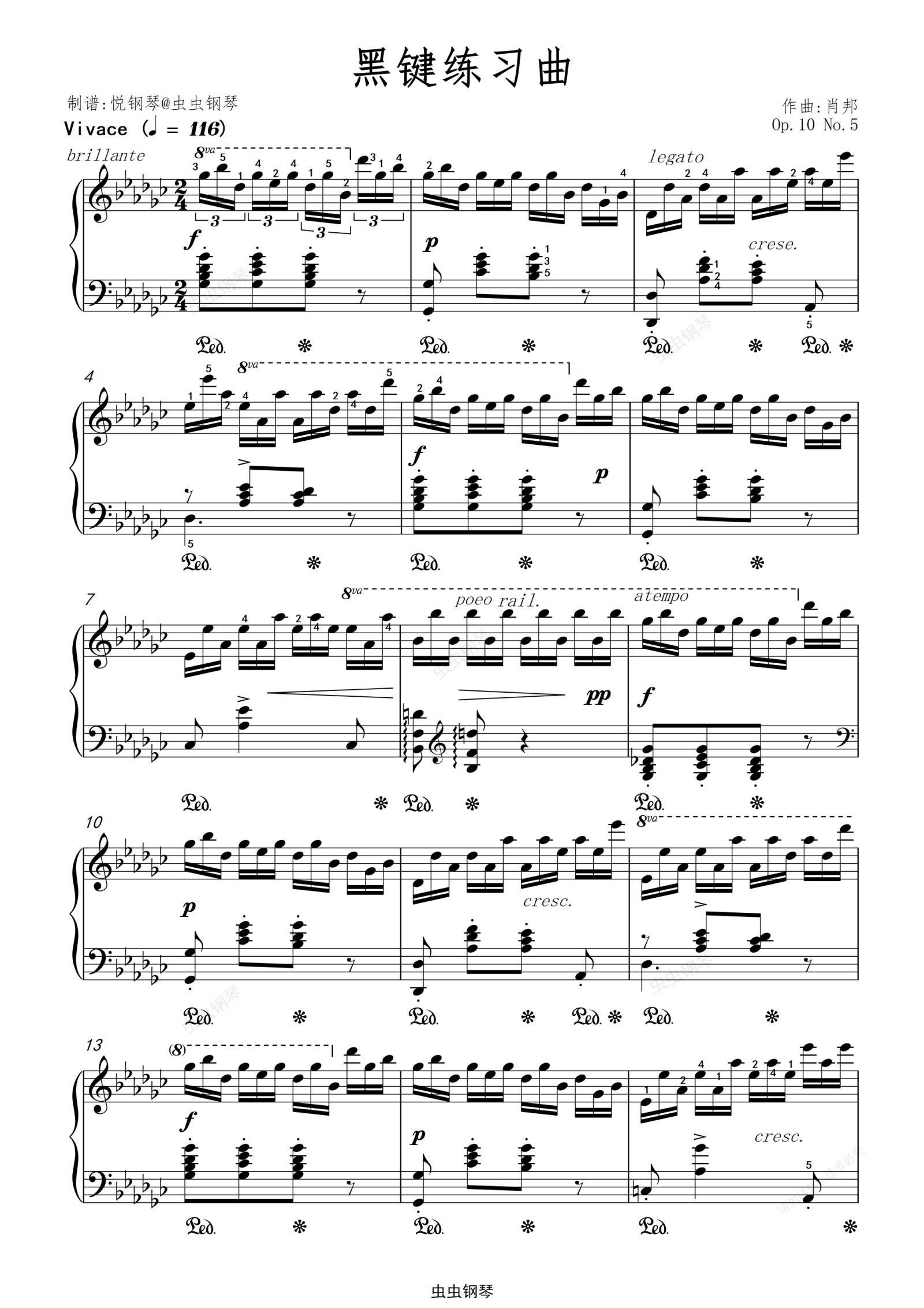 钢琴谱:黑键练习曲Op. 10 No. 5 肖邦