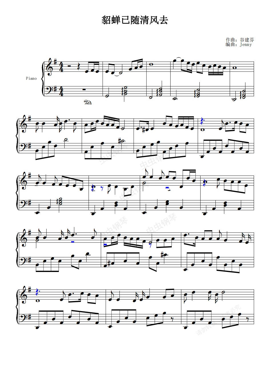 钢琴谱:貂蝉已随清风去