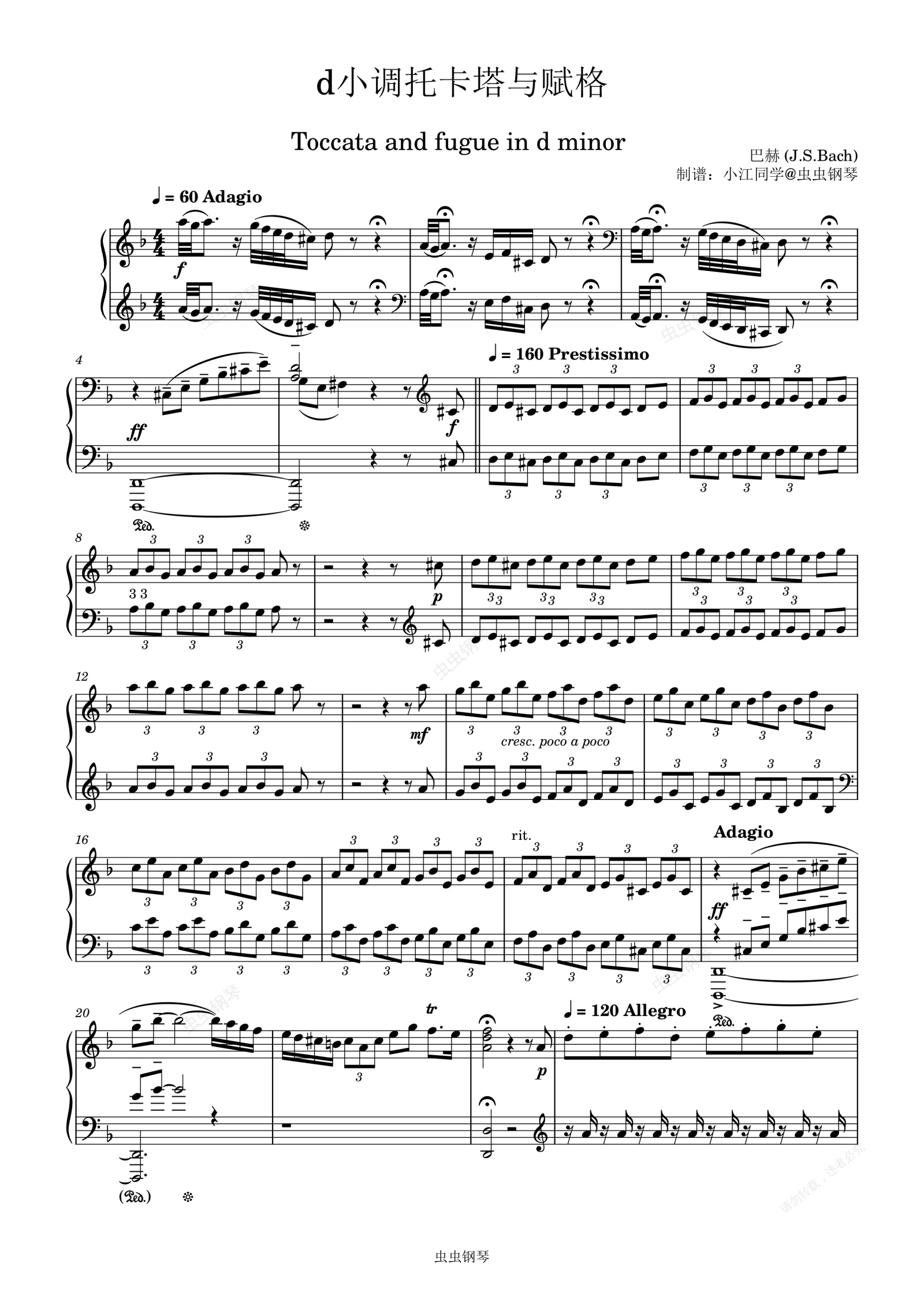 钢琴谱:d小调托卡塔与赋格 巴赫
