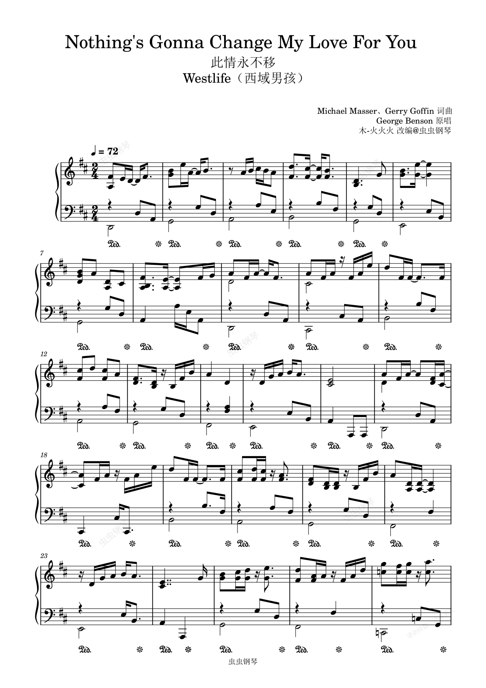 钢琴谱:Nothing's Gonna Change My Love For You《此情永不移》-Westlife(西城男孩)