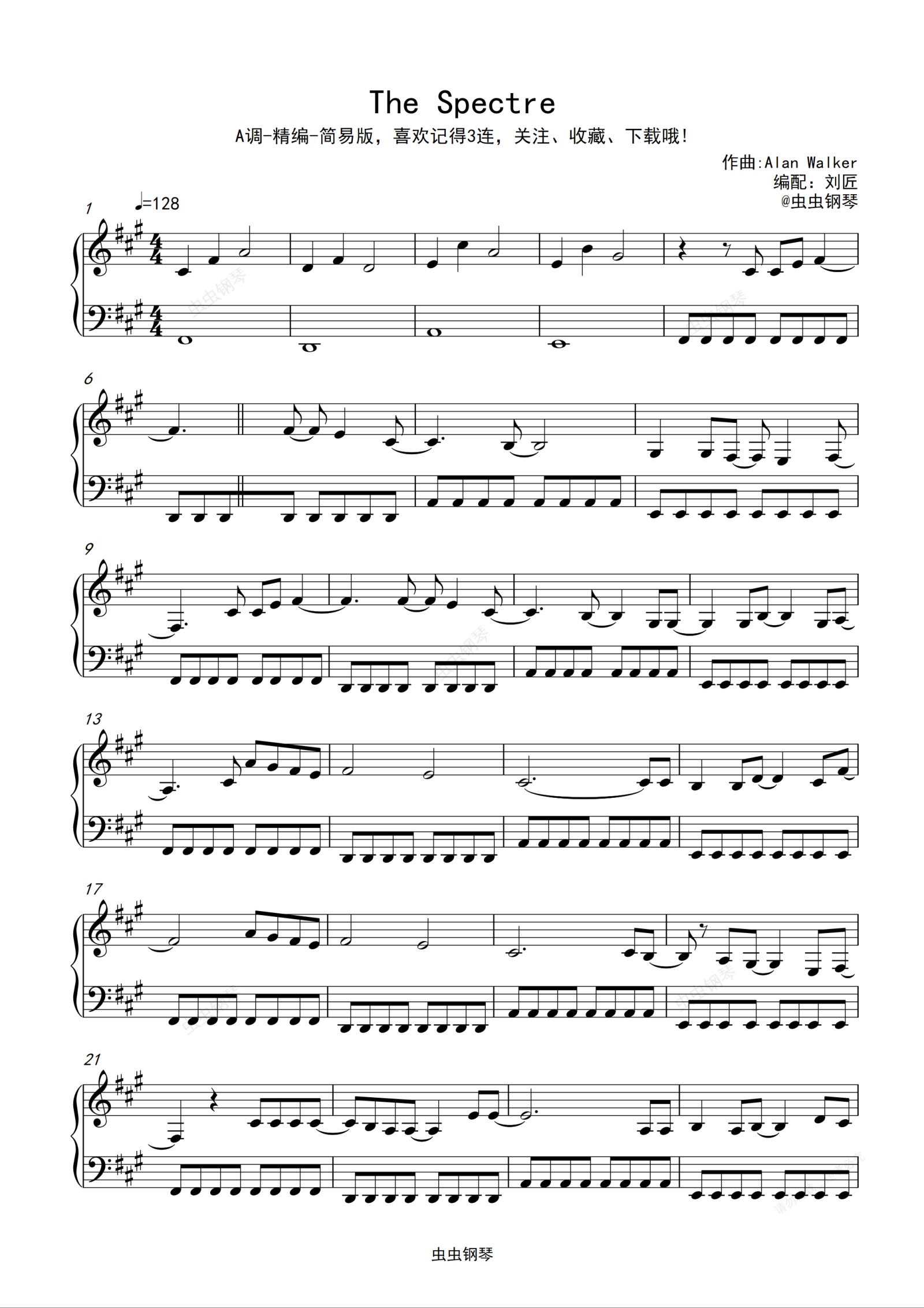 钢琴谱:【收藏+关注】The Spectre-刘匠制谱-A调好弹版