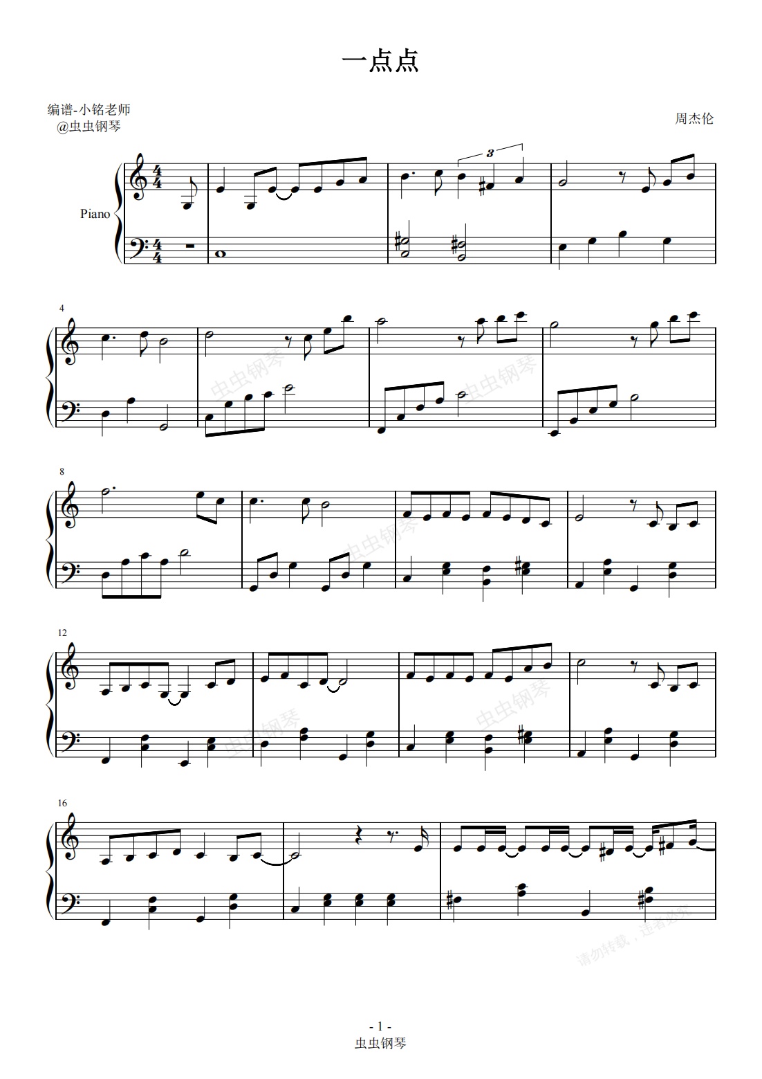 钢琴谱:一点点 【简易 动听】