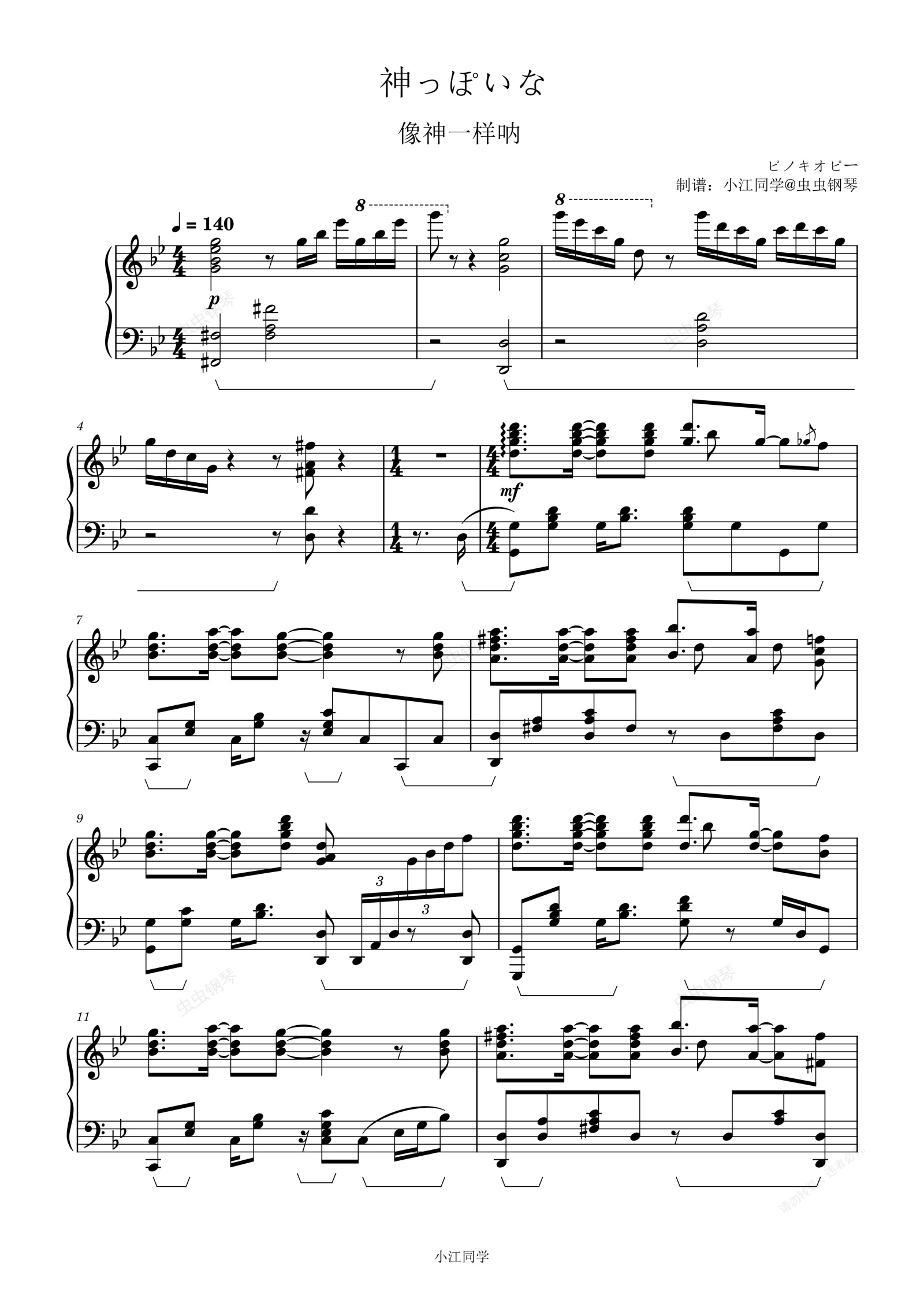 钢琴谱:神っぽいな(像神一样呐)