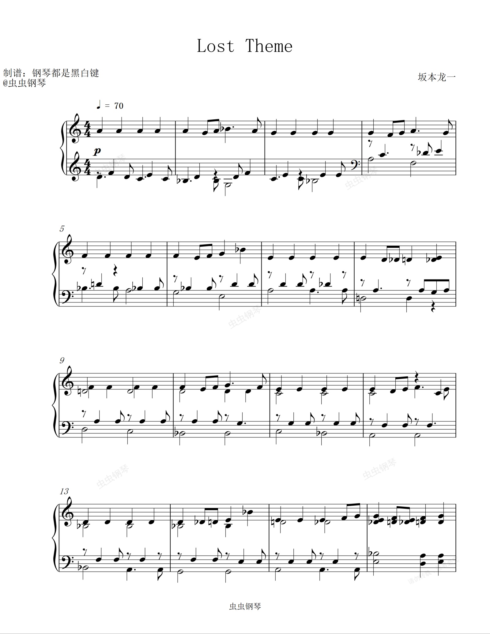 钢琴谱:Lost Theme - 坂本龙一 【钢琴轻音乐 | 舒缓音乐】