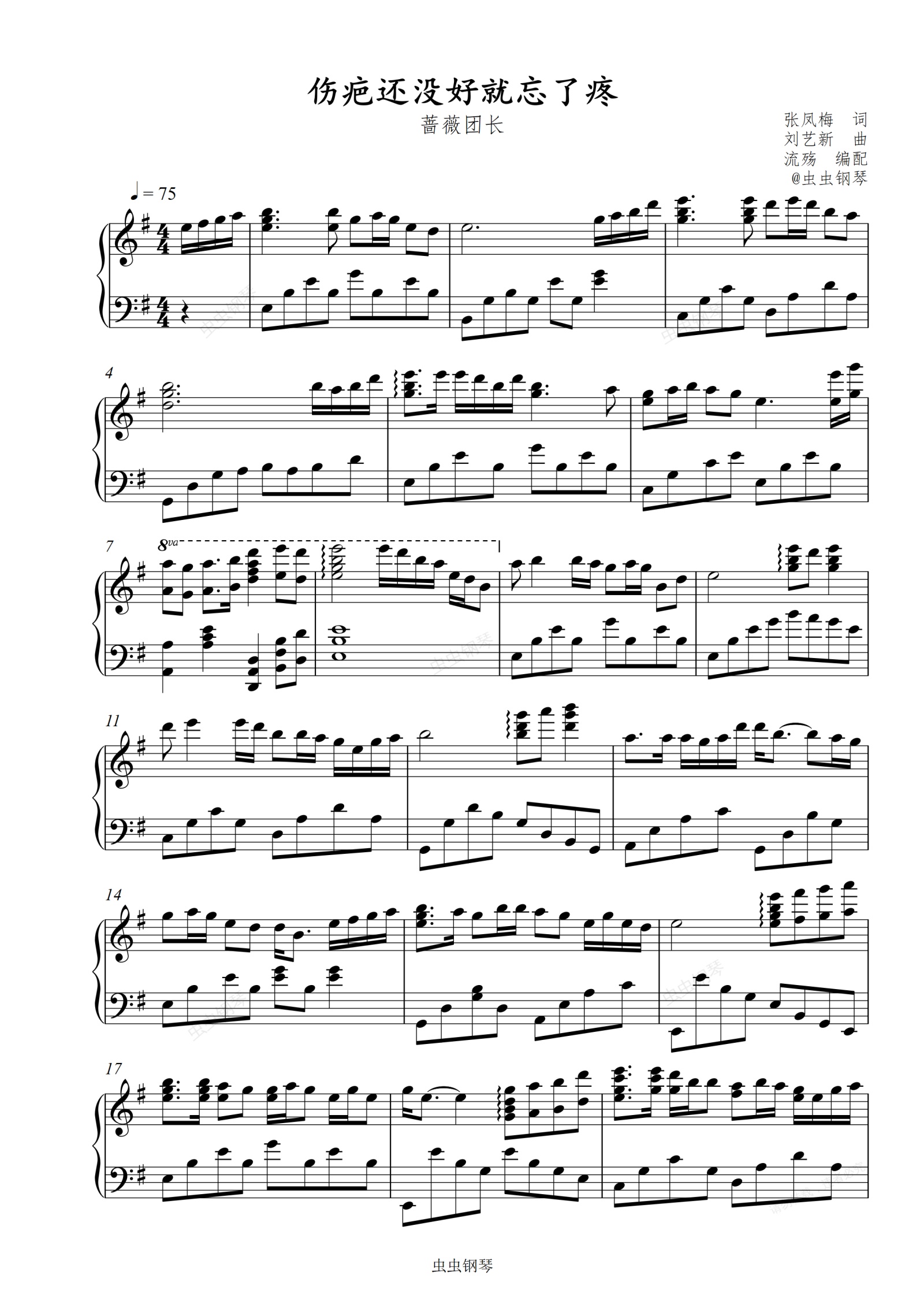 钢琴谱:伤疤还没好就忘了疼(G调版)