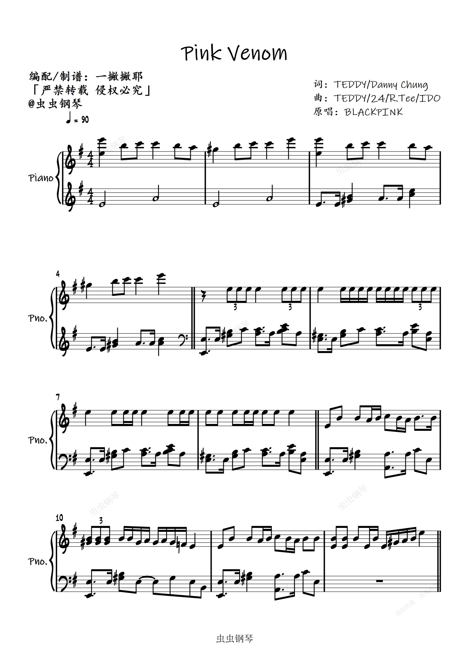 钢琴谱:Pink Venom【绝美还原独奏谱】BLACKPINK「一撇撇耶」