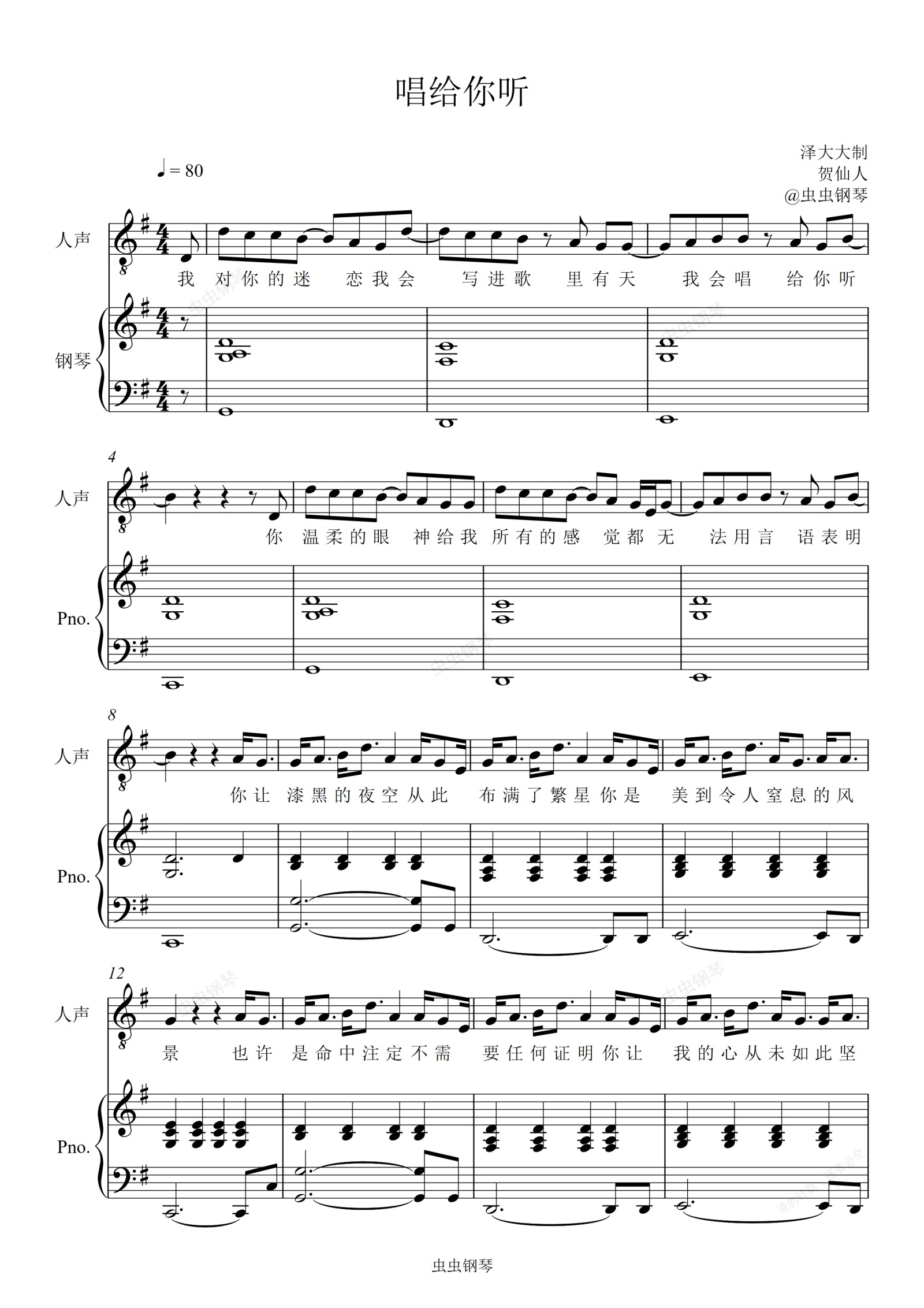 钢琴谱:唱给你听【原版弹唱附词】泽大大 贺仙人